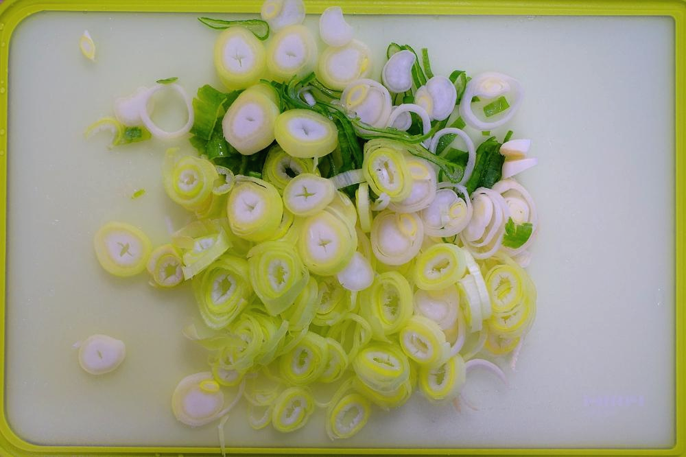 그 위에 대파 그리고 다진마늘 1스푼을 같이 넣어 주세요