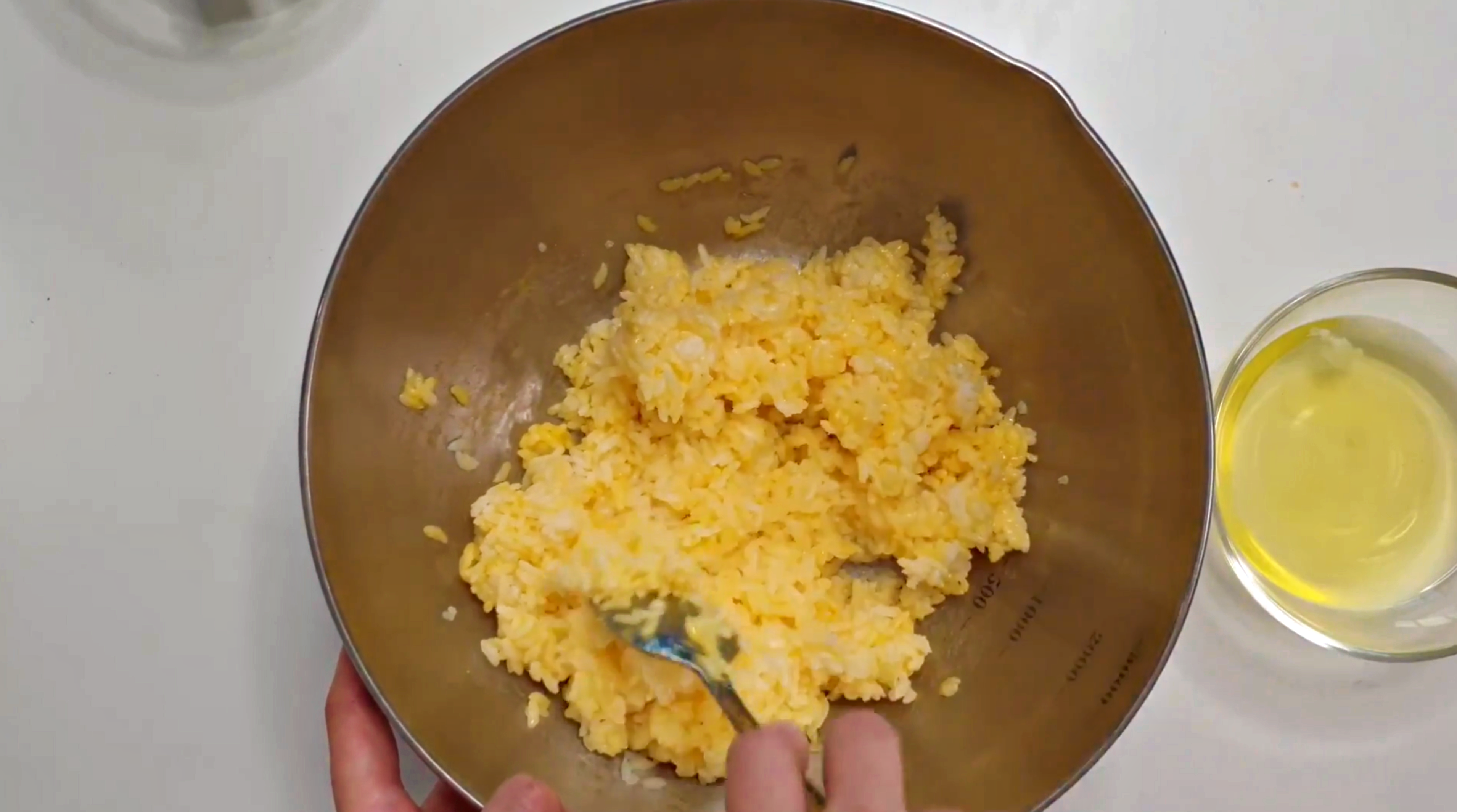 밥 2인분에 계란 노른자만 분리해서 섞어 주세요