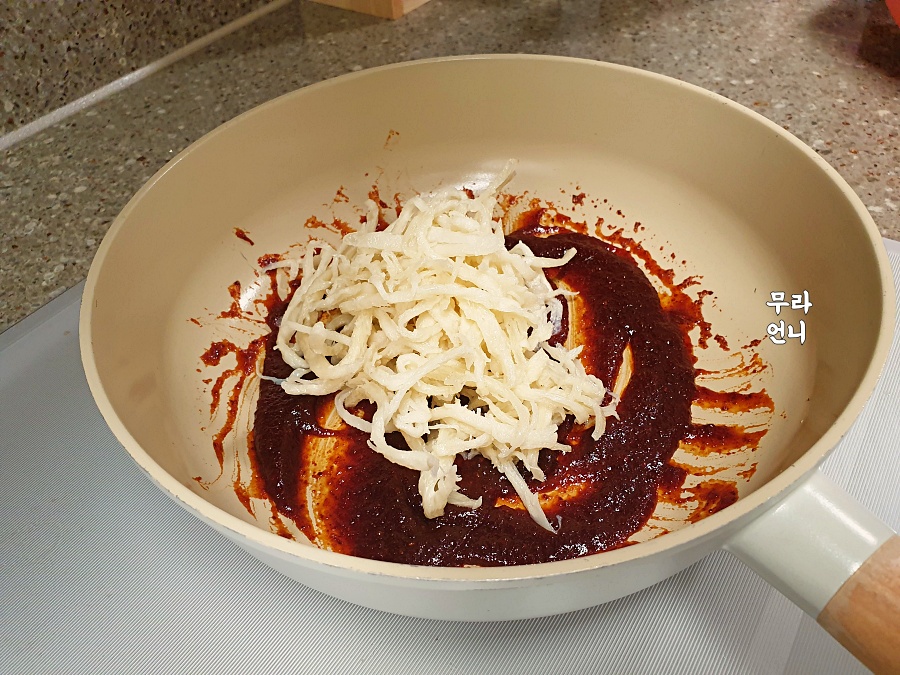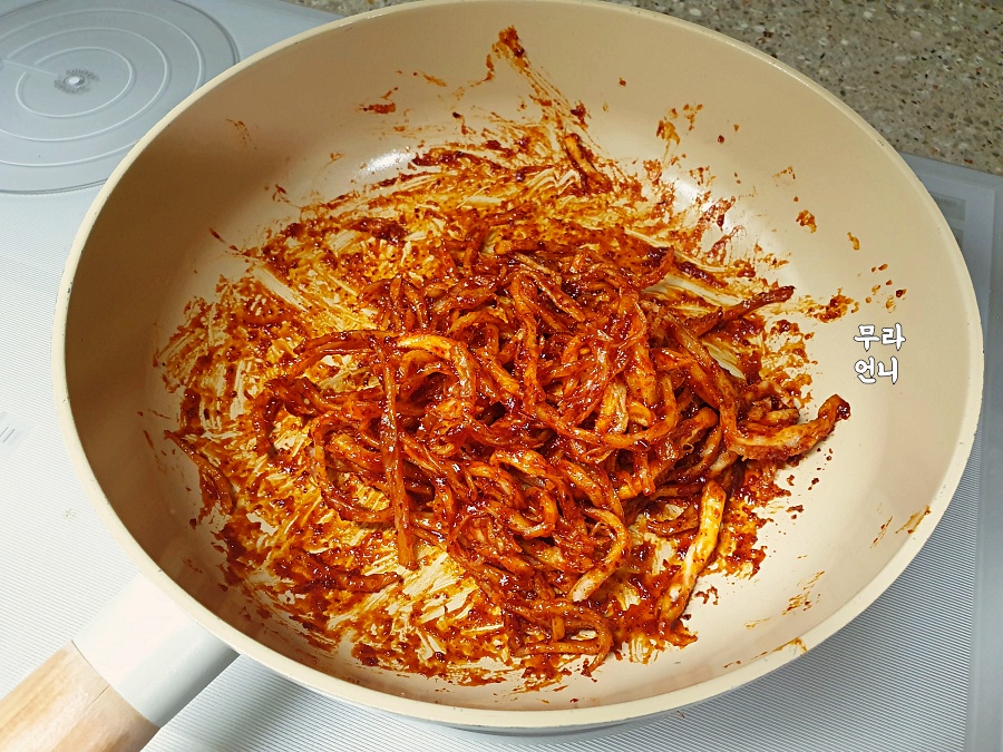 양념장에 진미채 섞기