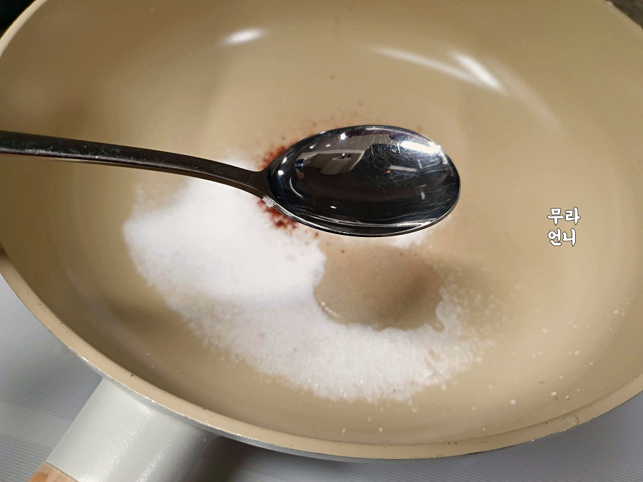 설탕 3스푼 얇게 넣어줬는데