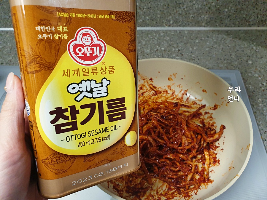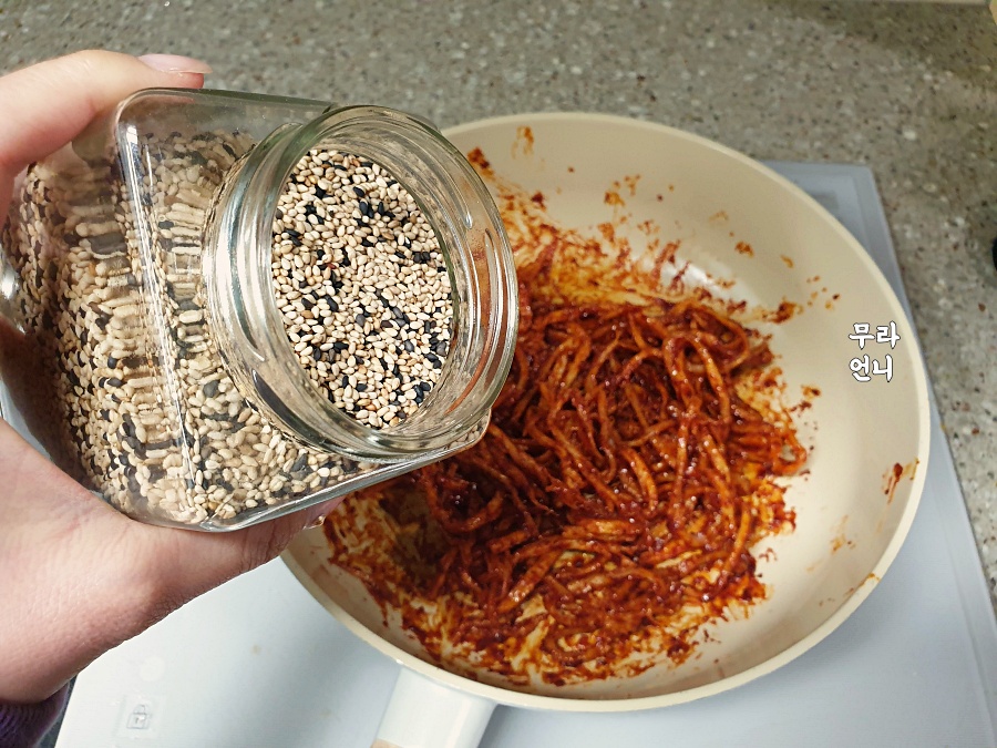 불을 끄고 진미채를 섞어줄 거라