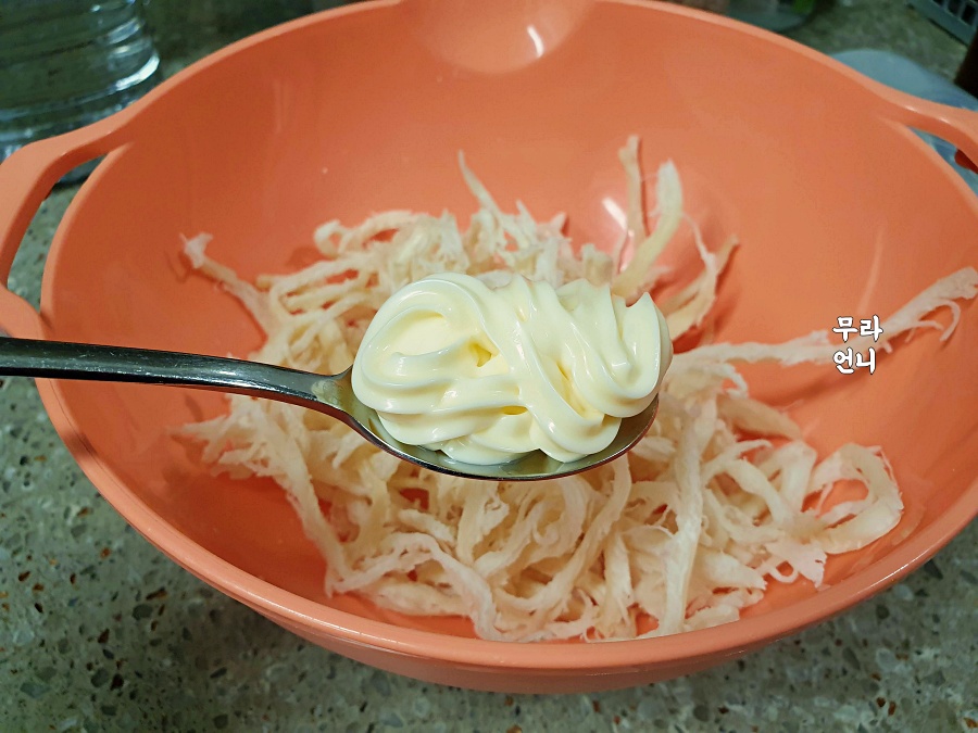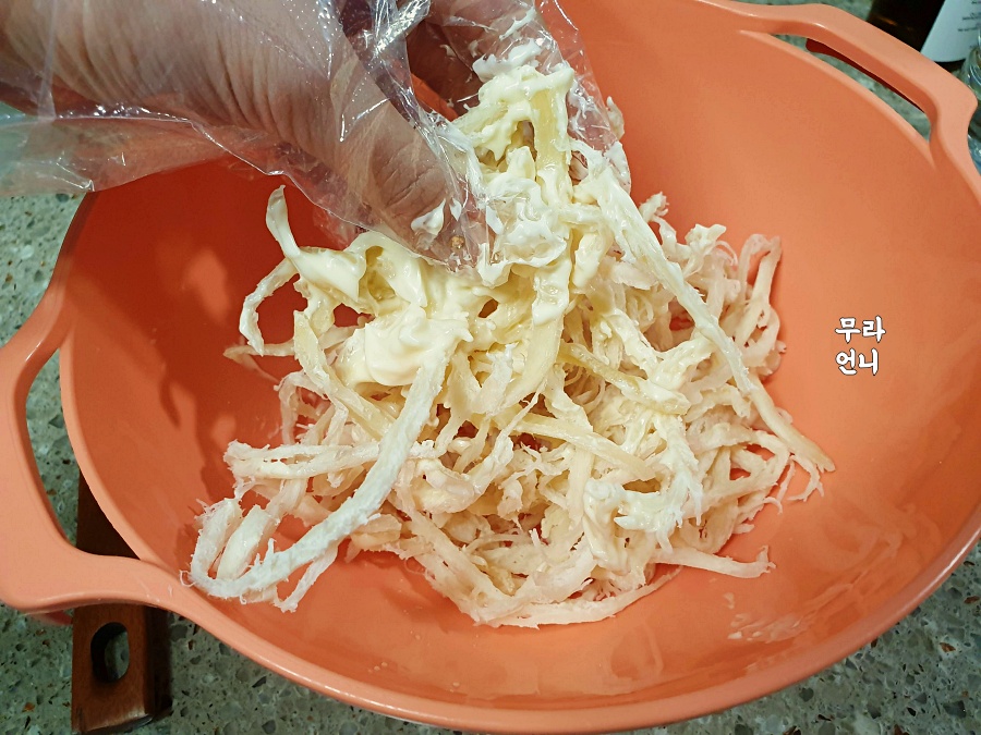 진미채에 마요네즈 섞기