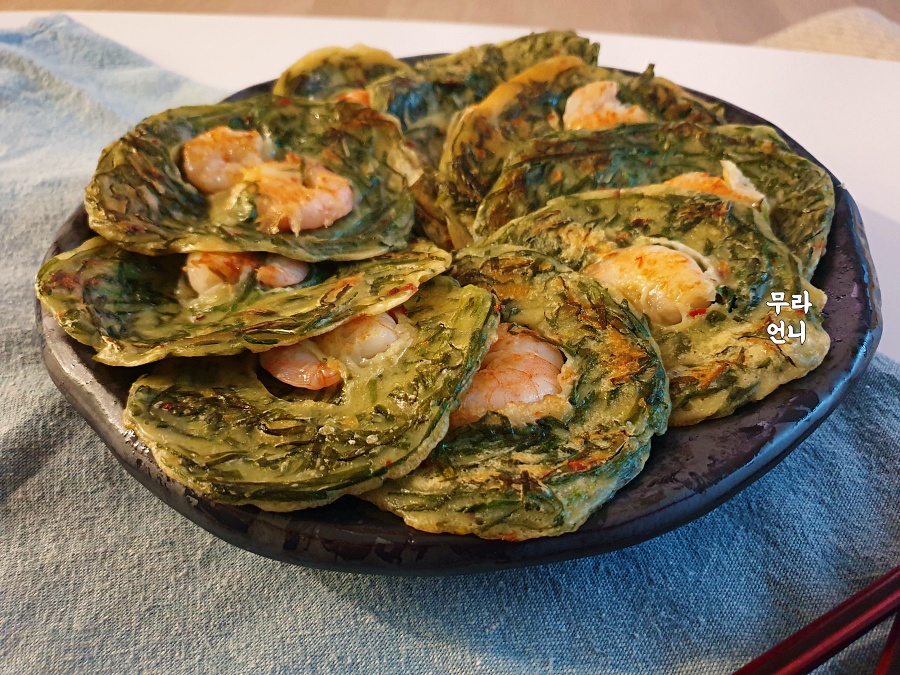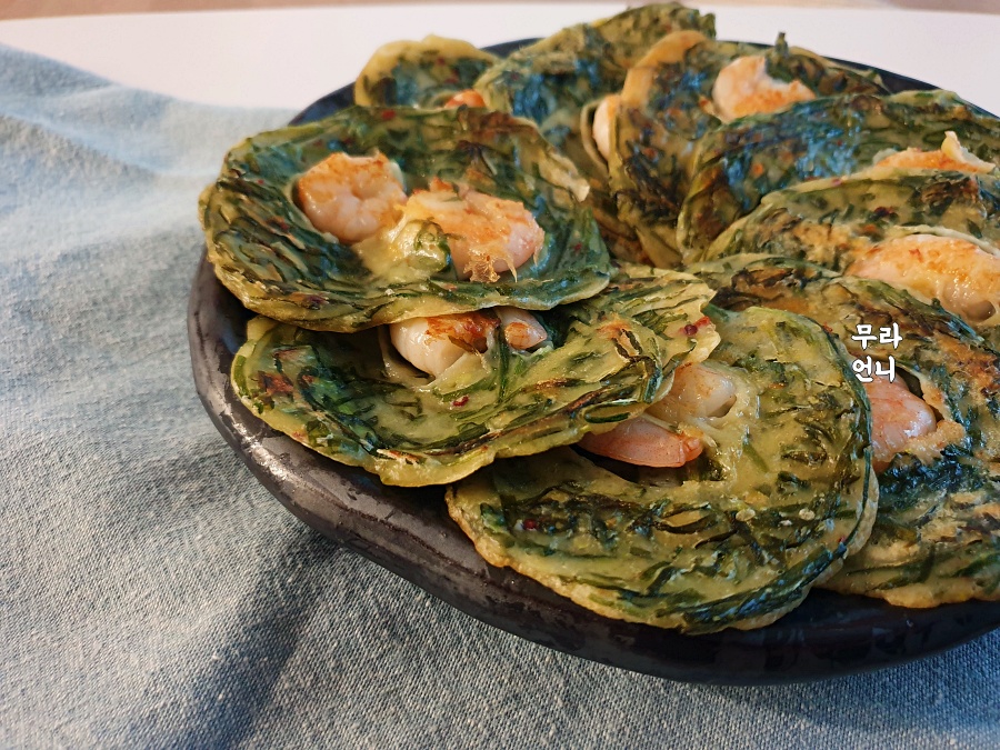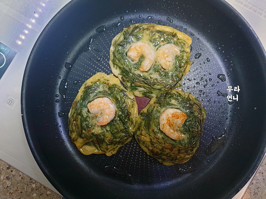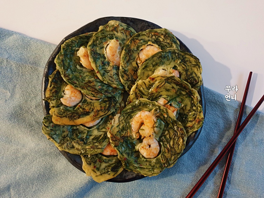 부추전에 새우만 톡! 올리면
