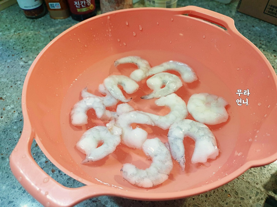 냉동새우를 찬물에 20분 정도 담가