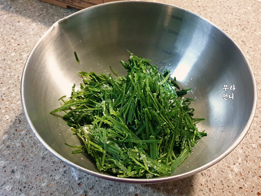 먼저 부추를 볼에 담습니다