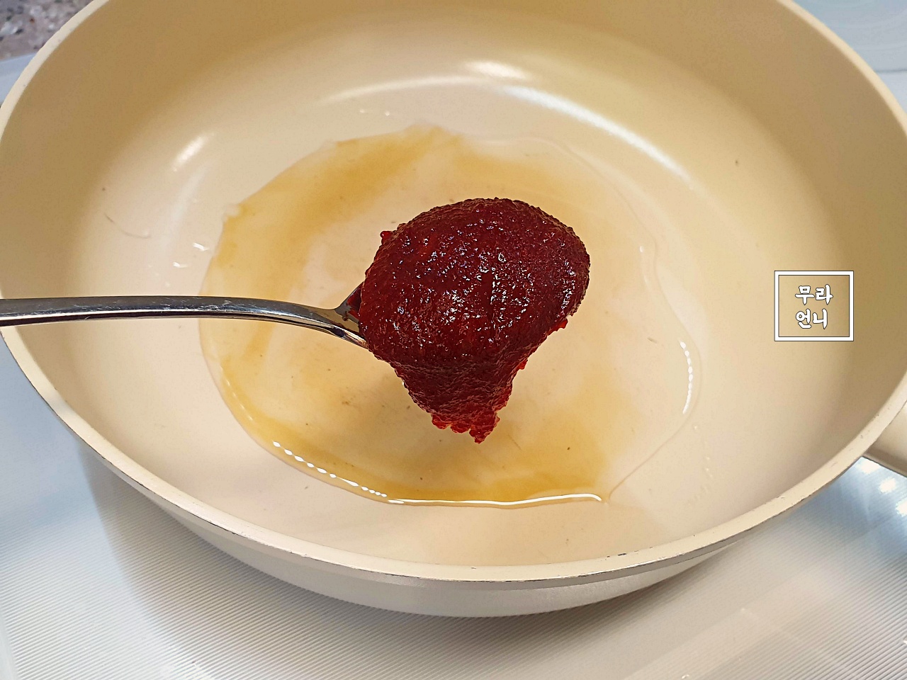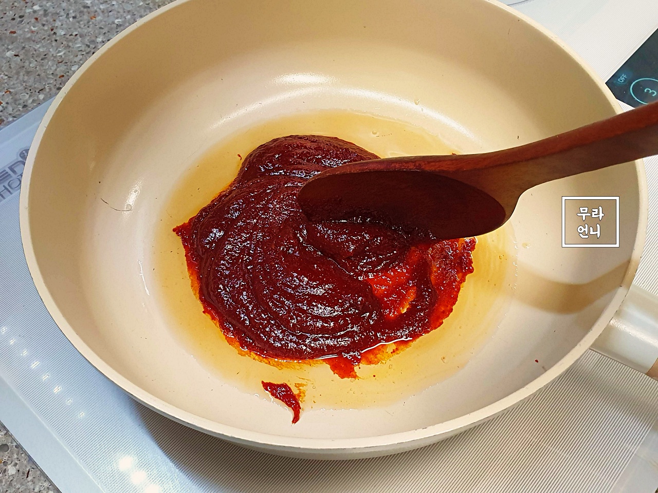 고춧가루까지 넣어서 약 30초 정도 볶았으면