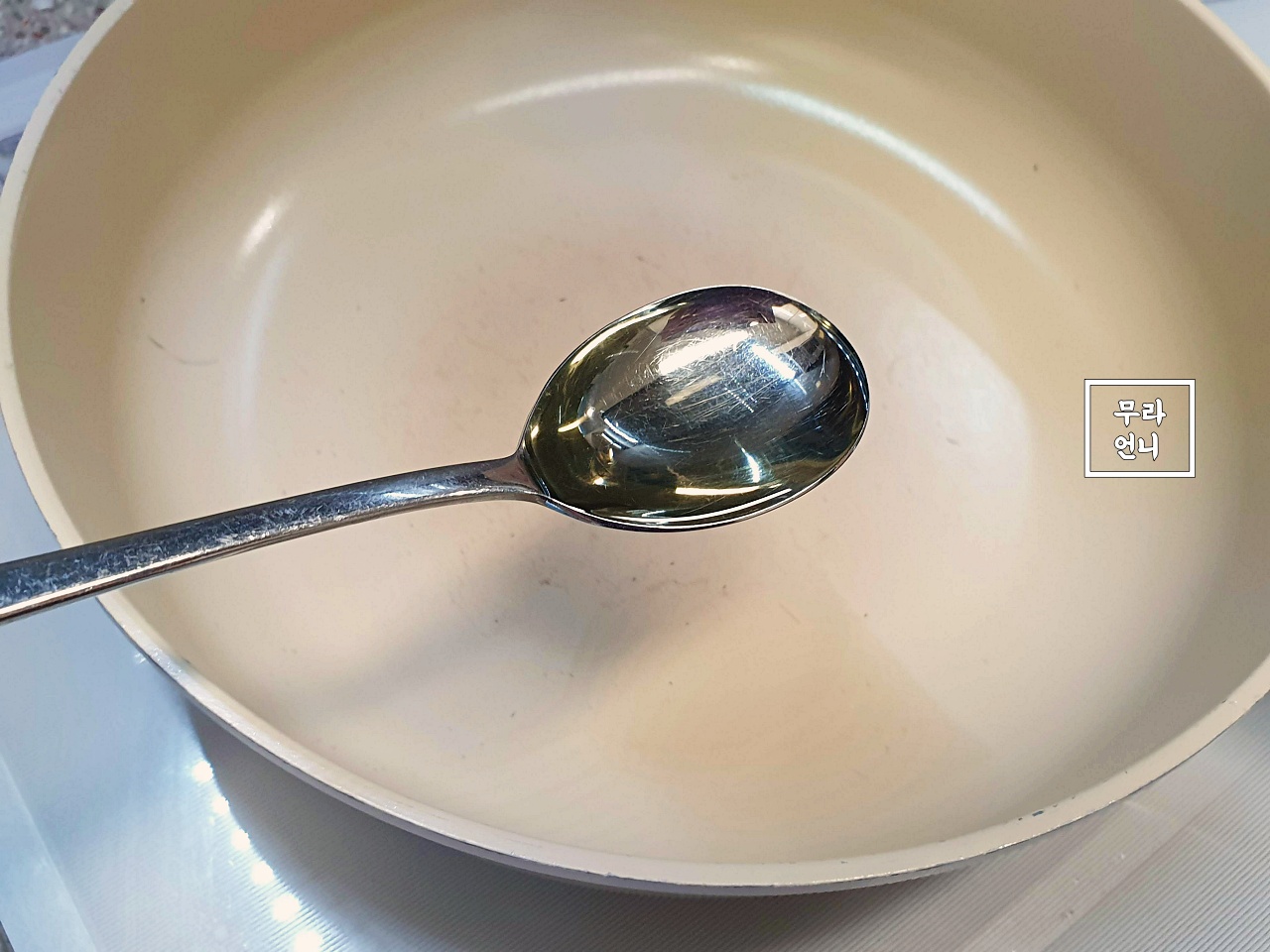 식용유 2스푼, 참기름 2스푼을 둘러주세요