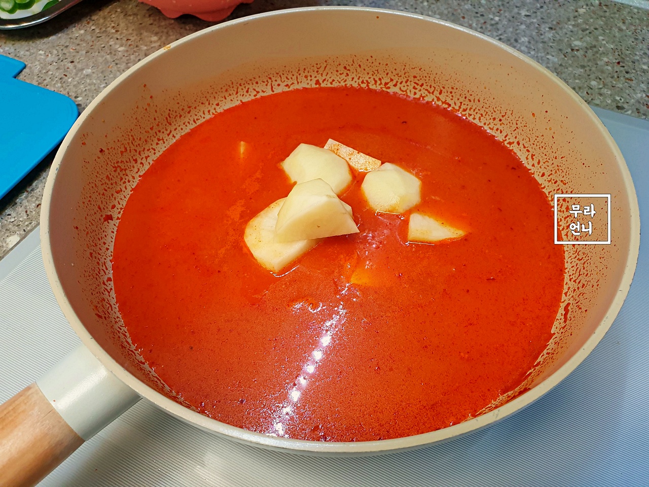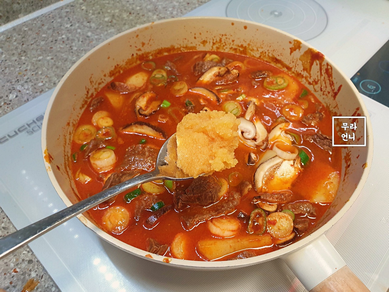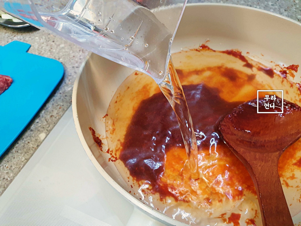 고춧가루를 너무 많이 넣으시면 텁텁해지니까