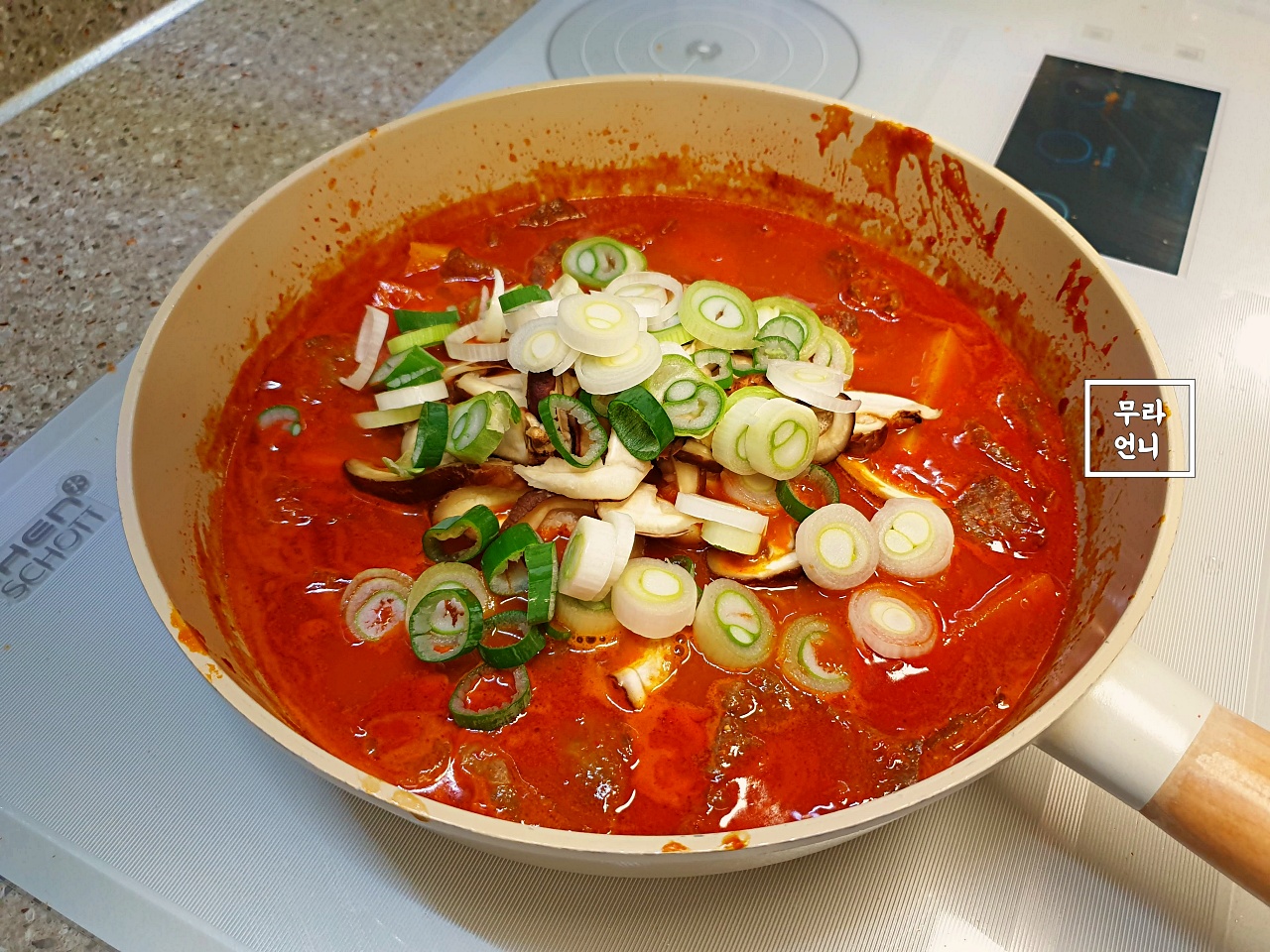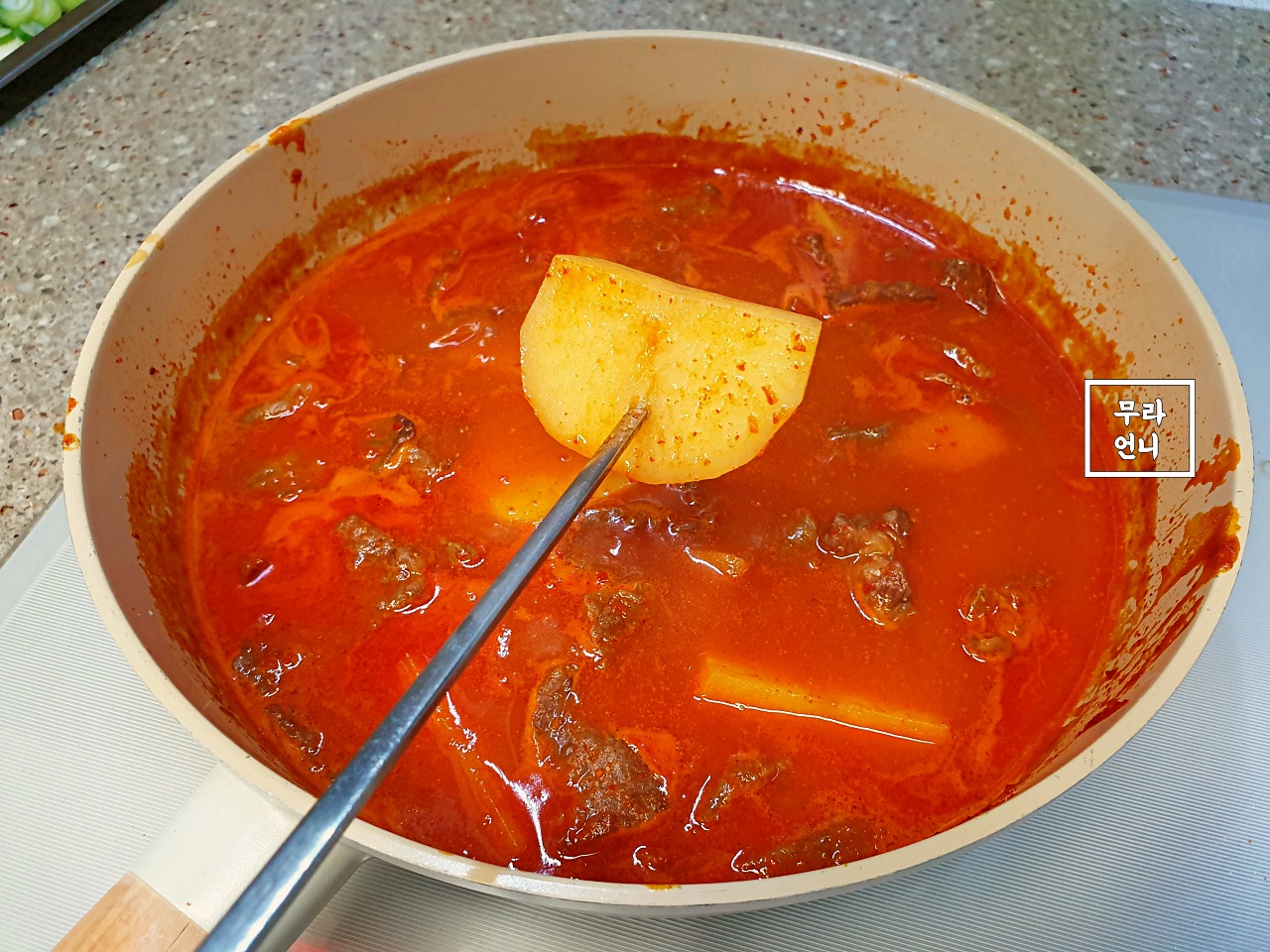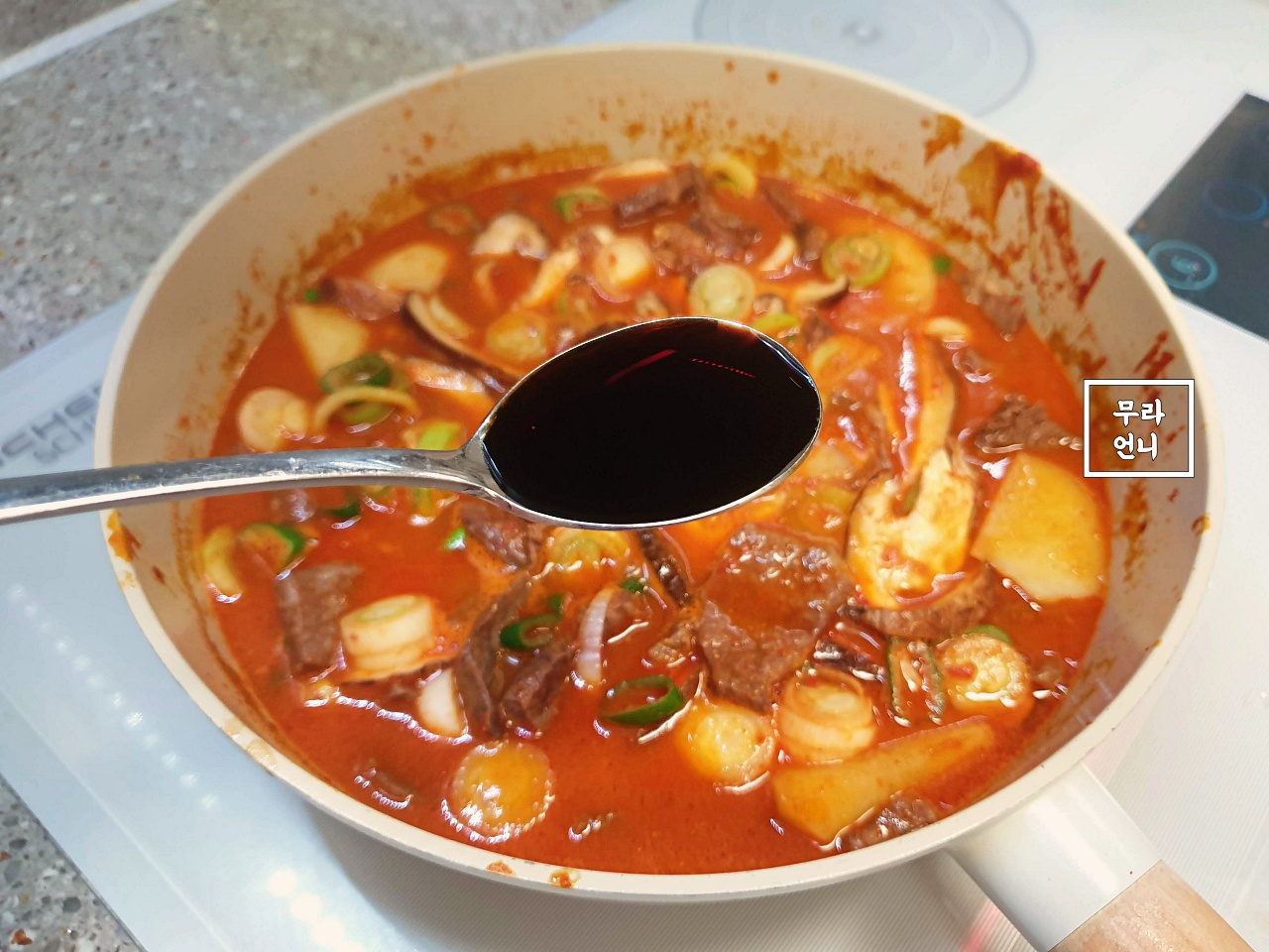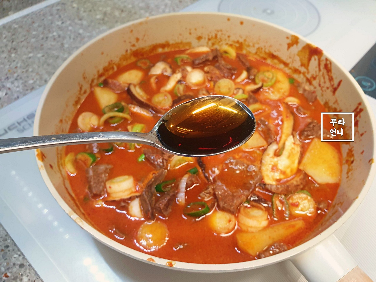 고춧가루를 너무 많이 넣으시면 텁텁해지니까