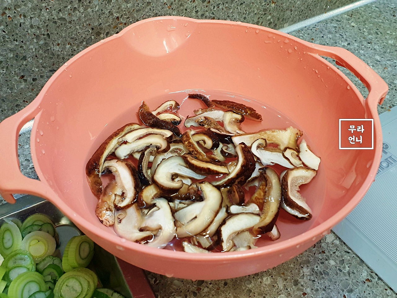 표고버섯을 흐르는 물에 깨끗하게 씻고