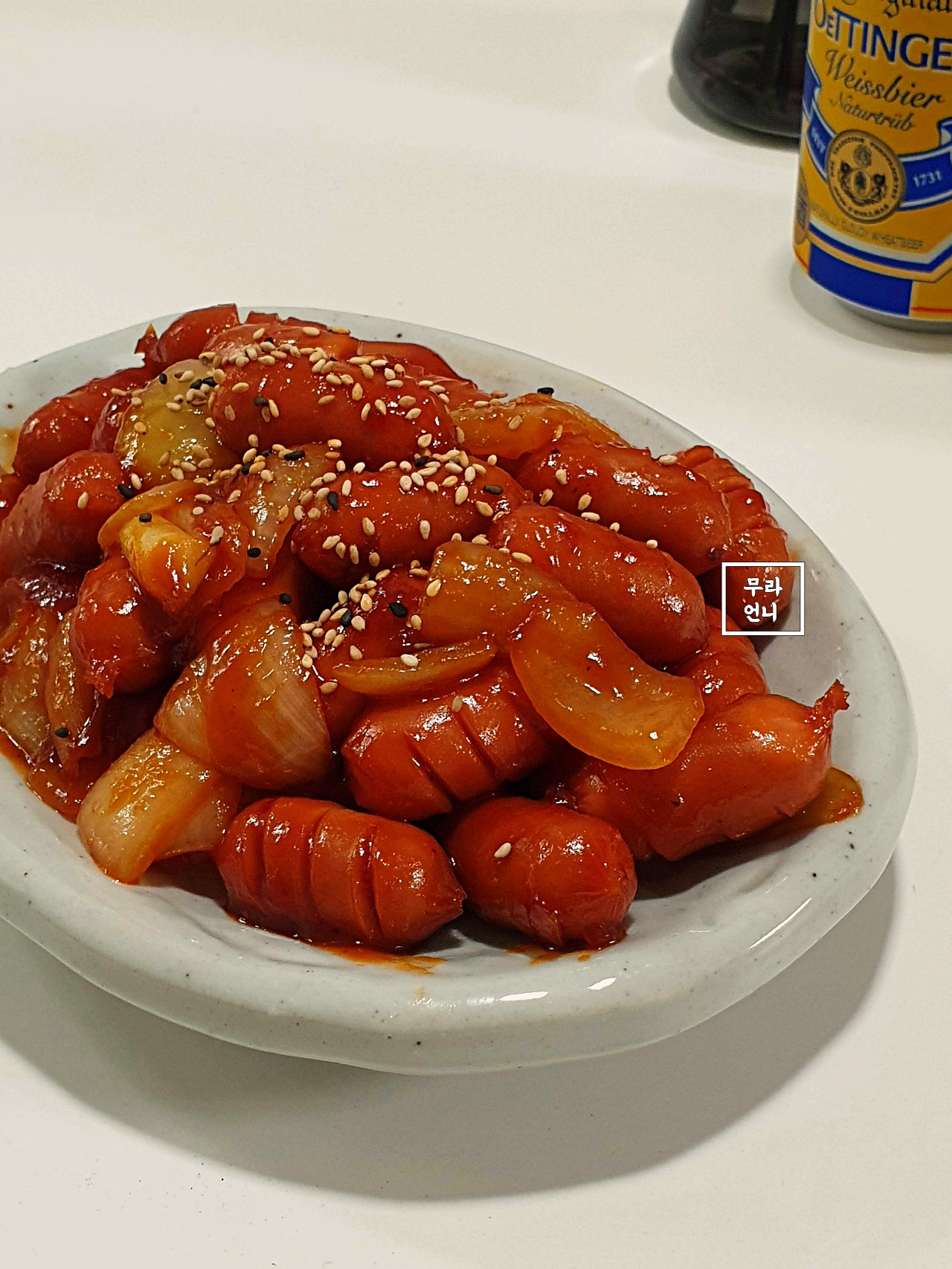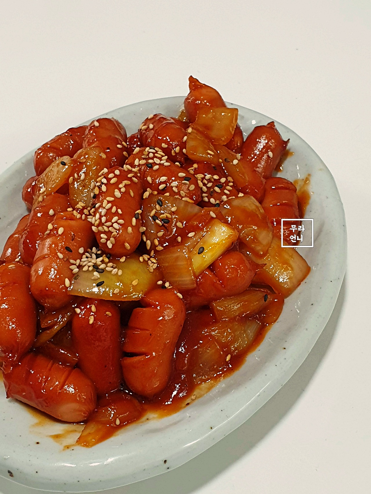 만약 양념장이 야채와 소세지에서 겉돌면
