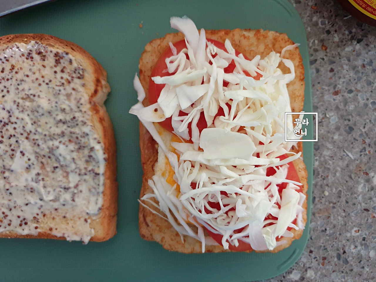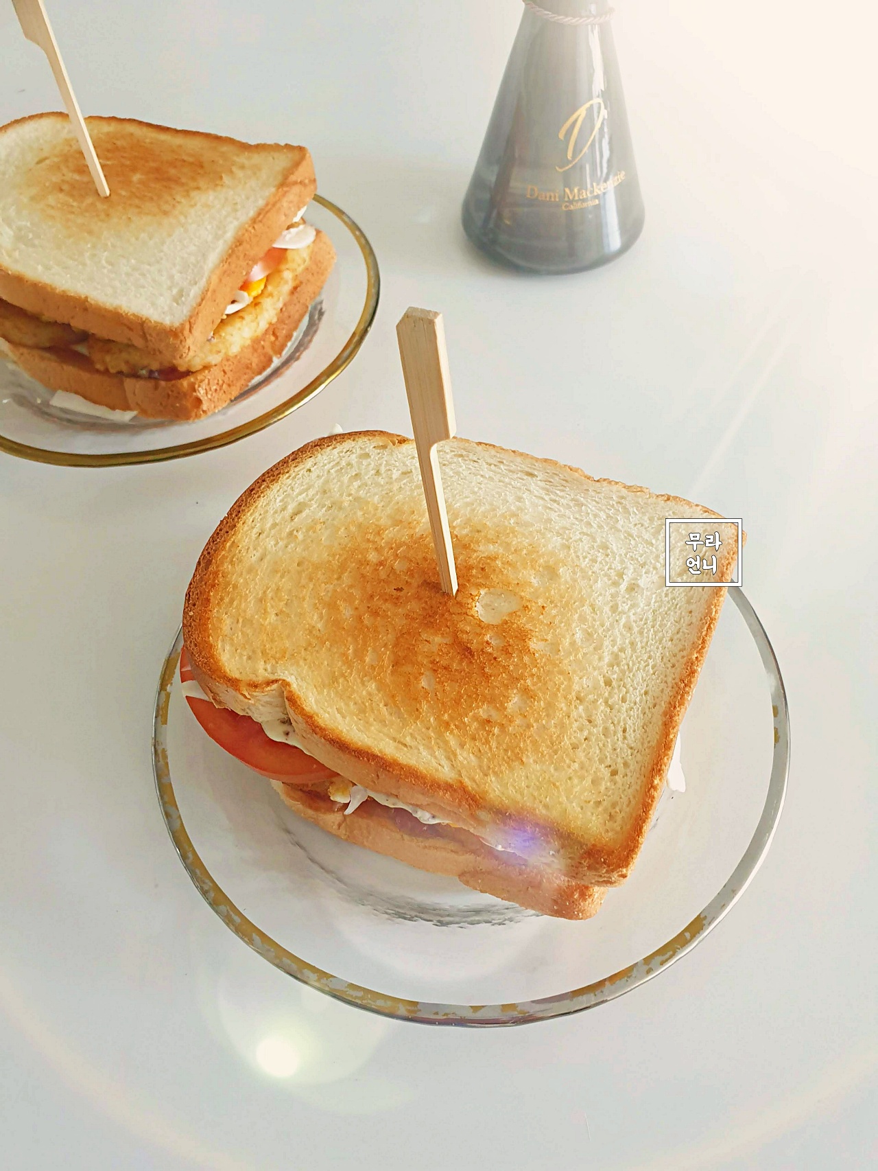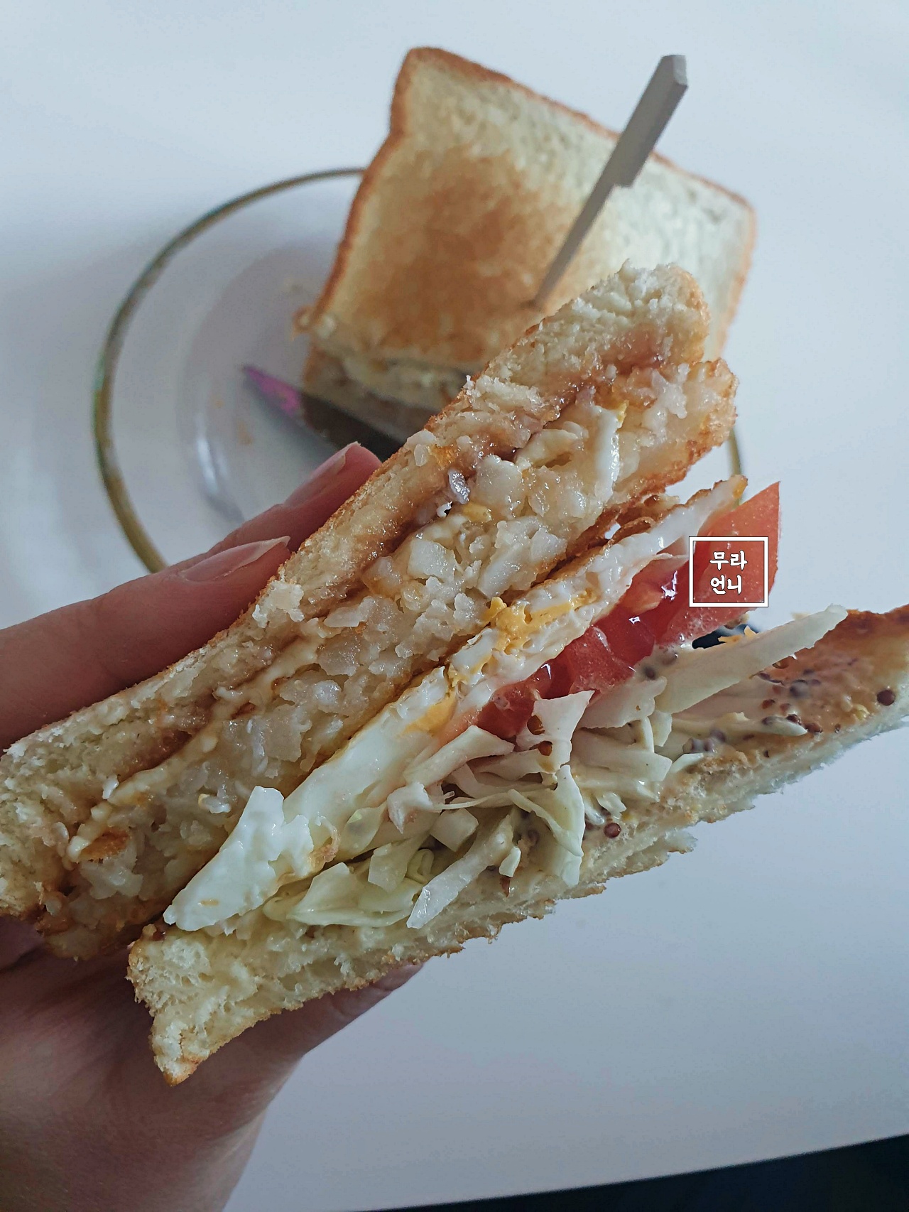집에서 만들어 먹을 때는 간단하게 샌드위치에요 ㅋㅋ