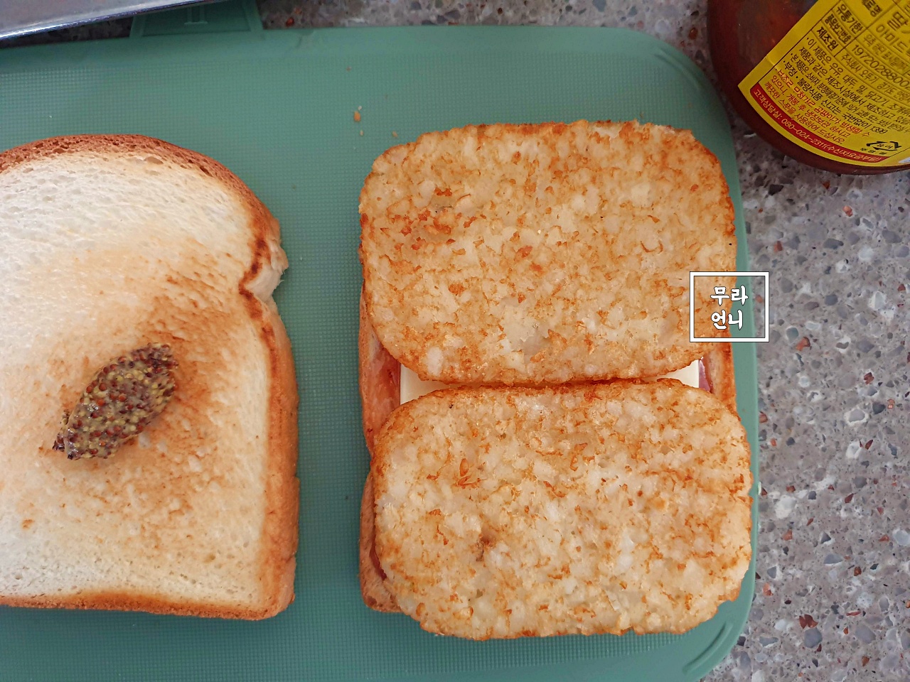 여기가지 올려서 나머지 식빵 한 쪽 덮으면