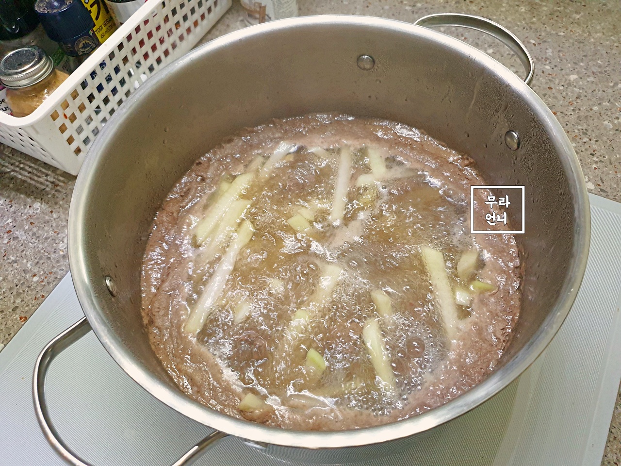 들러붙지 않도록 계속해서 볶아주셔야 합니다