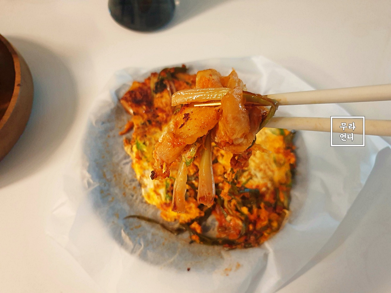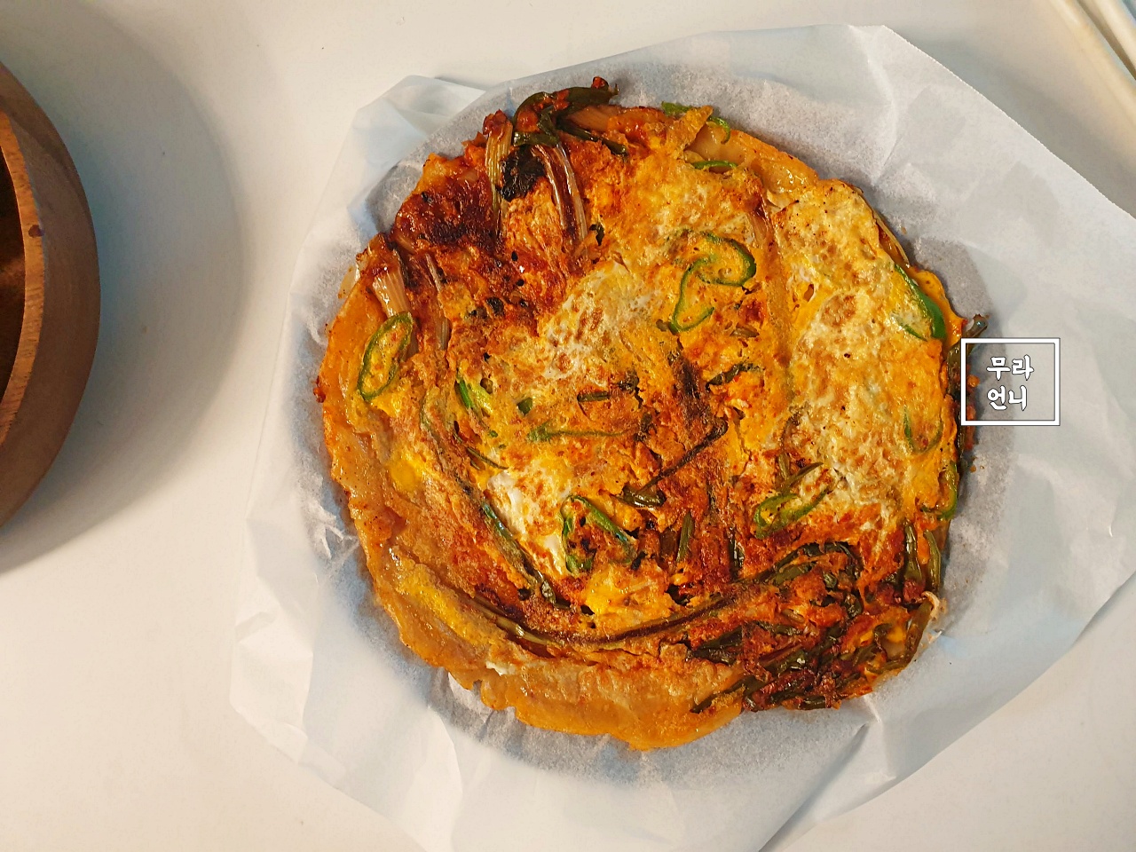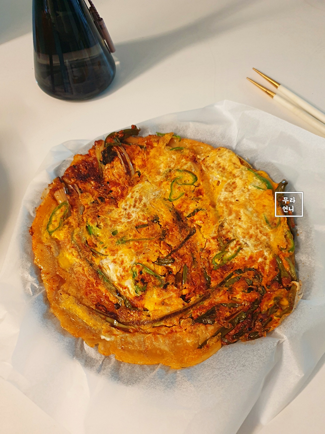 굳이 김치양념을 덜어내지 않아도 파김치전은 맛있답니다