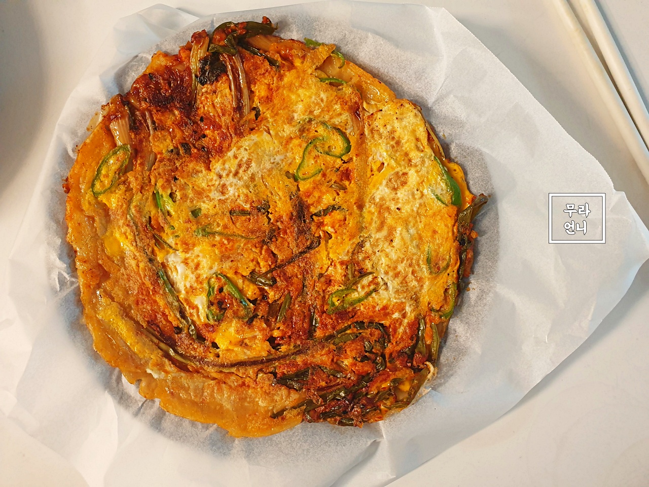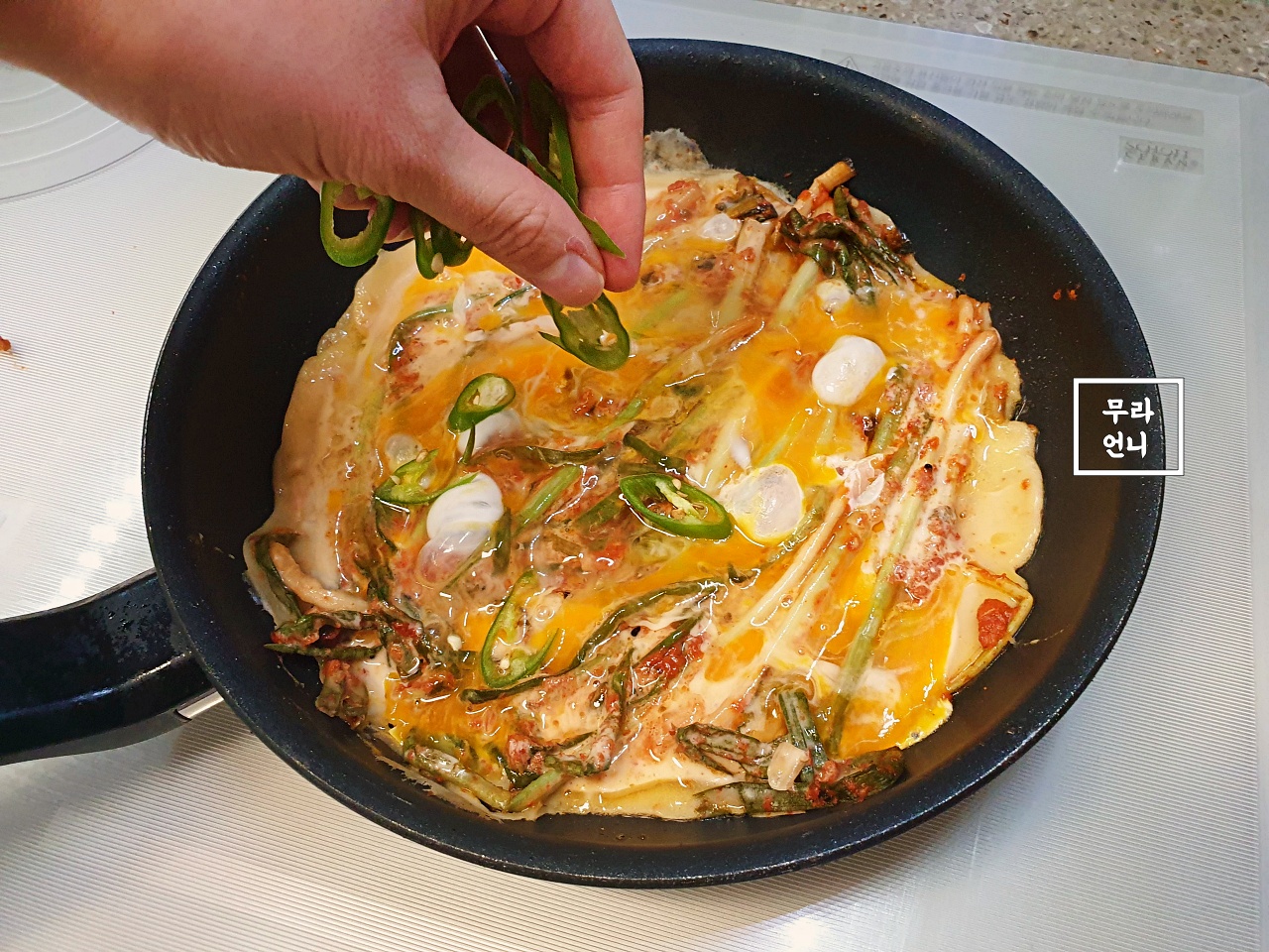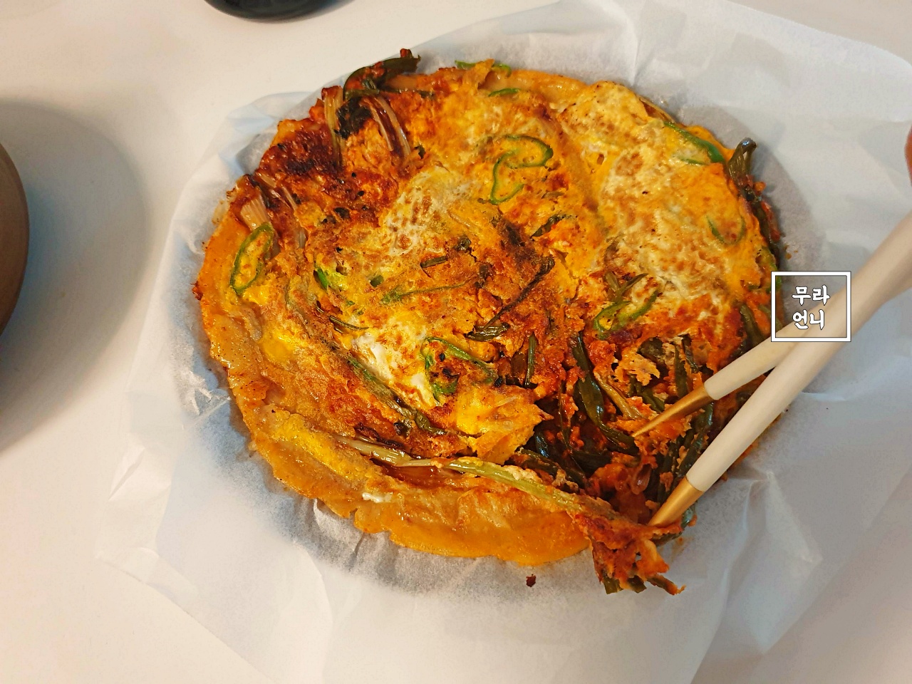 굳이 김치양념을 덜어내지 않아도 파김치전은 맛있답니다