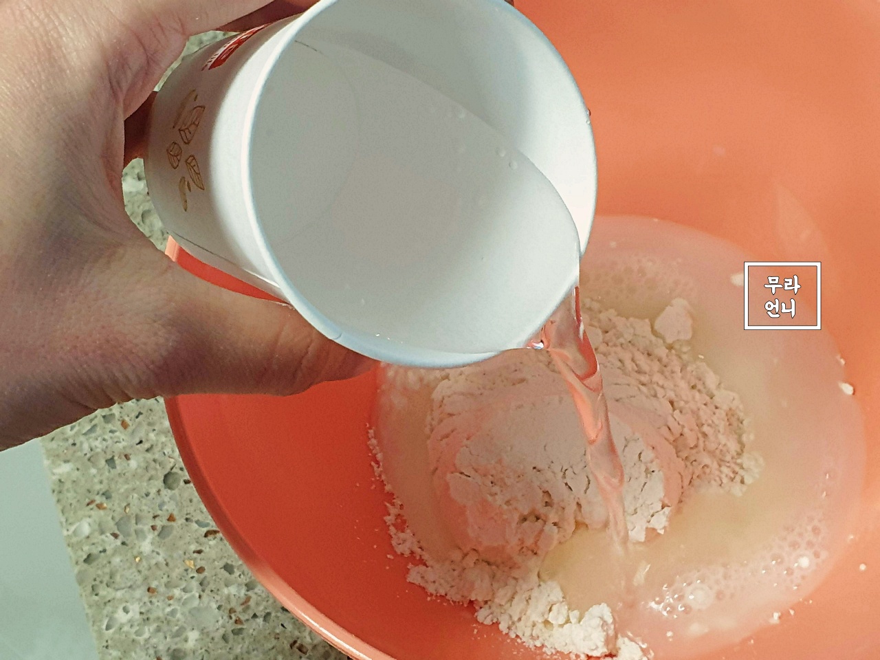 그 위에 부침가루 물을 위에 뿌려주는 방법이 있는데