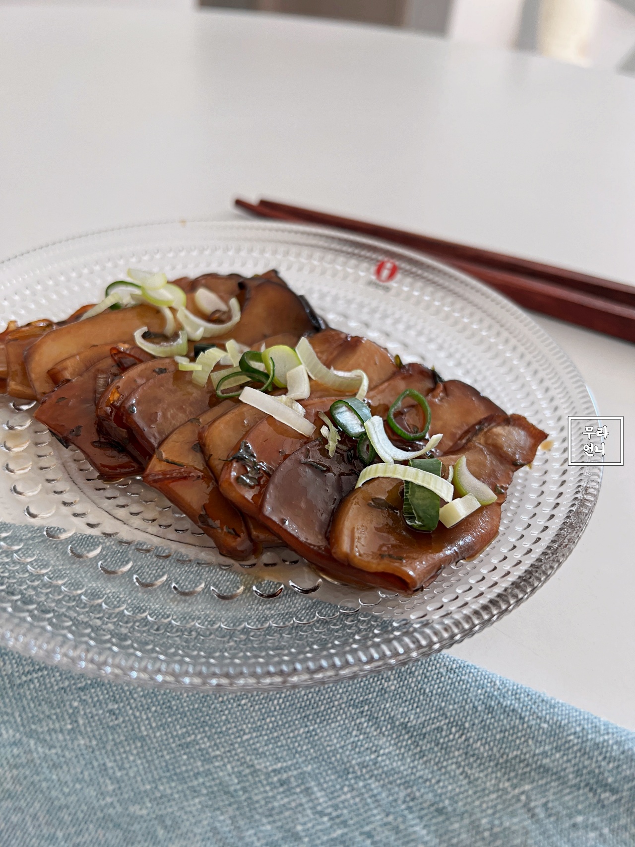 버섯의 쫄깃함이 살아있어 대량으로 만들어 놓고 싶은 반찬이랍니다