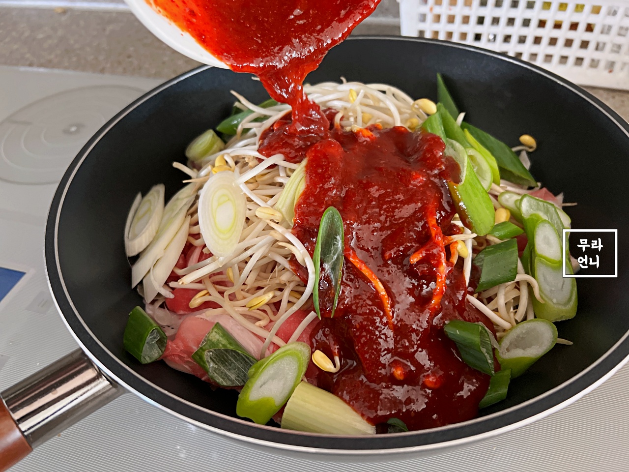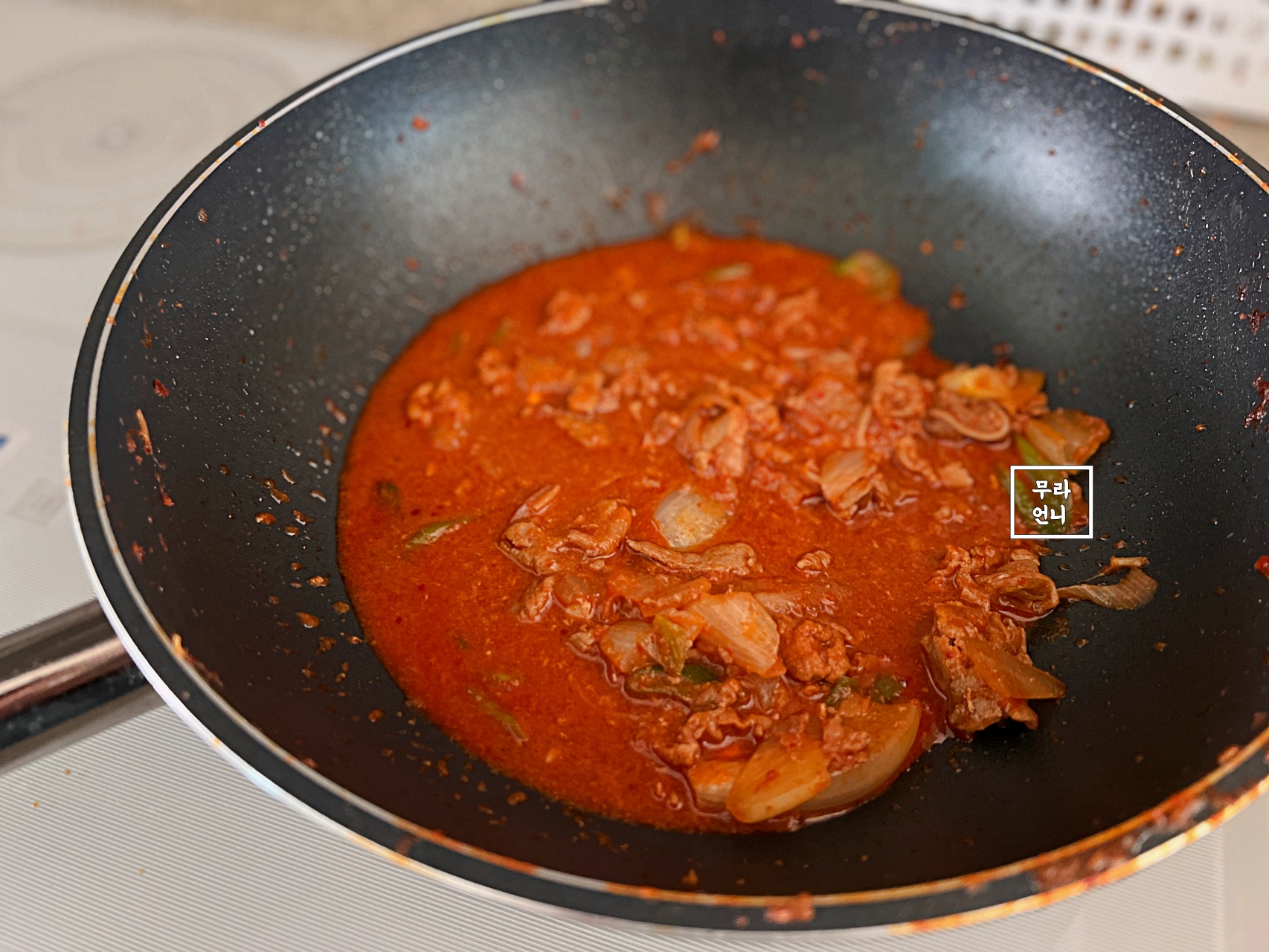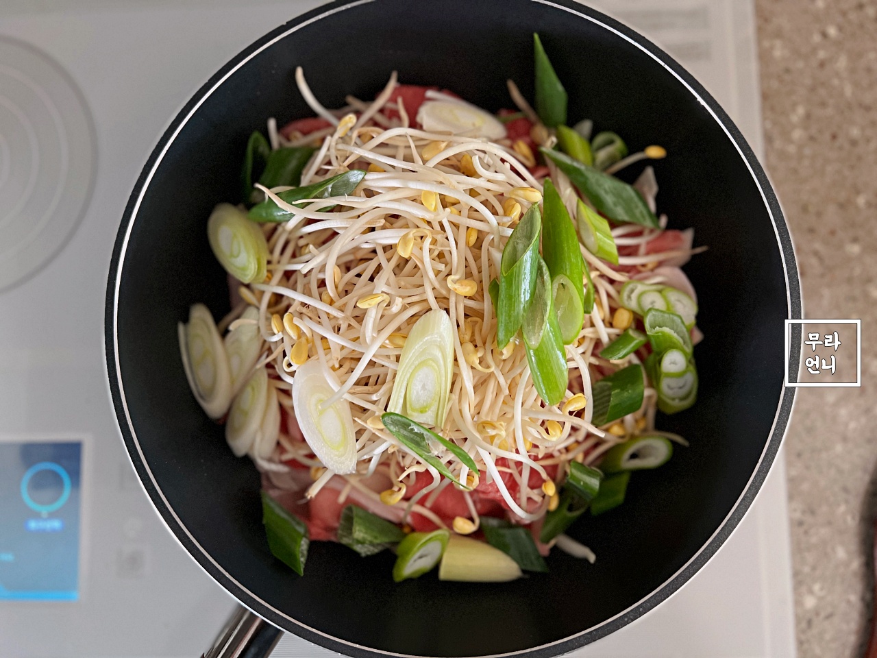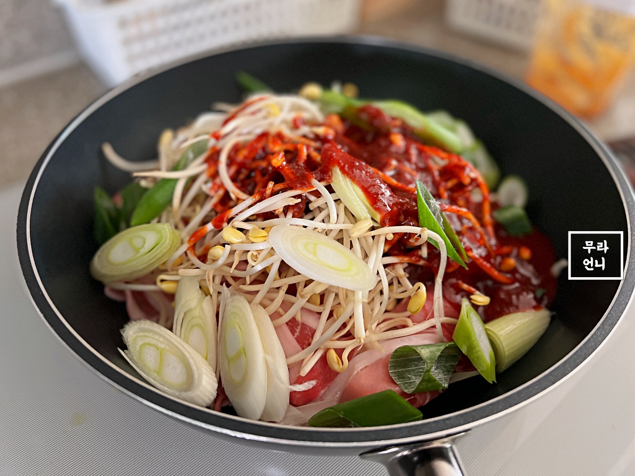 그 위에 양념장 부어서 끓이기만 하면 되니까