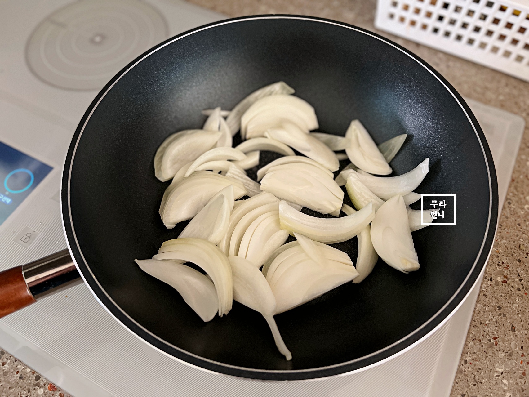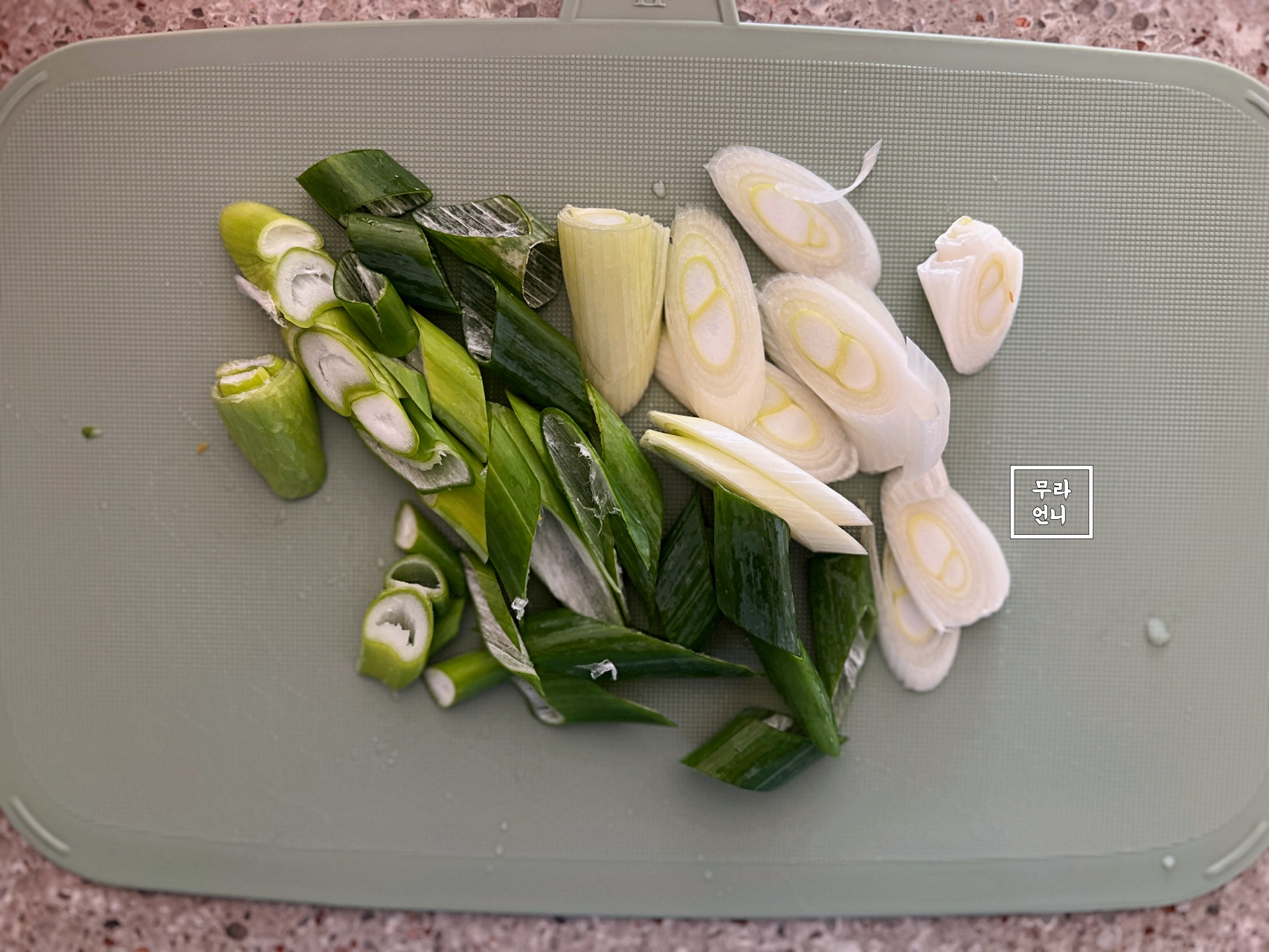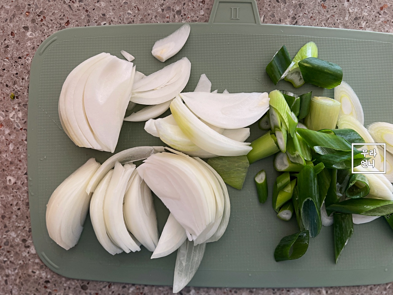 콩불에 들어갈 양파와 대파를 손질해 주세요