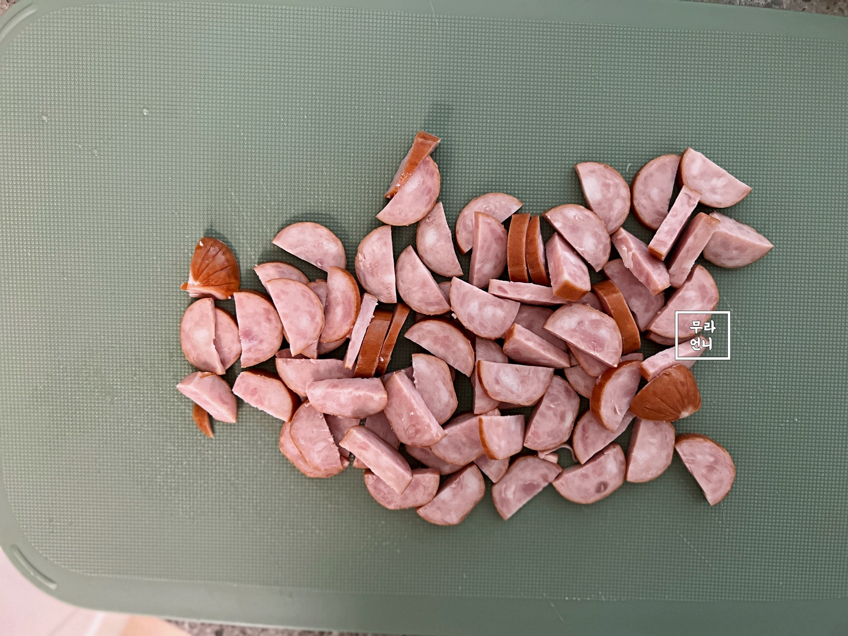 소세지 1개를 먹기 좋은 크기로 잘랐습니다