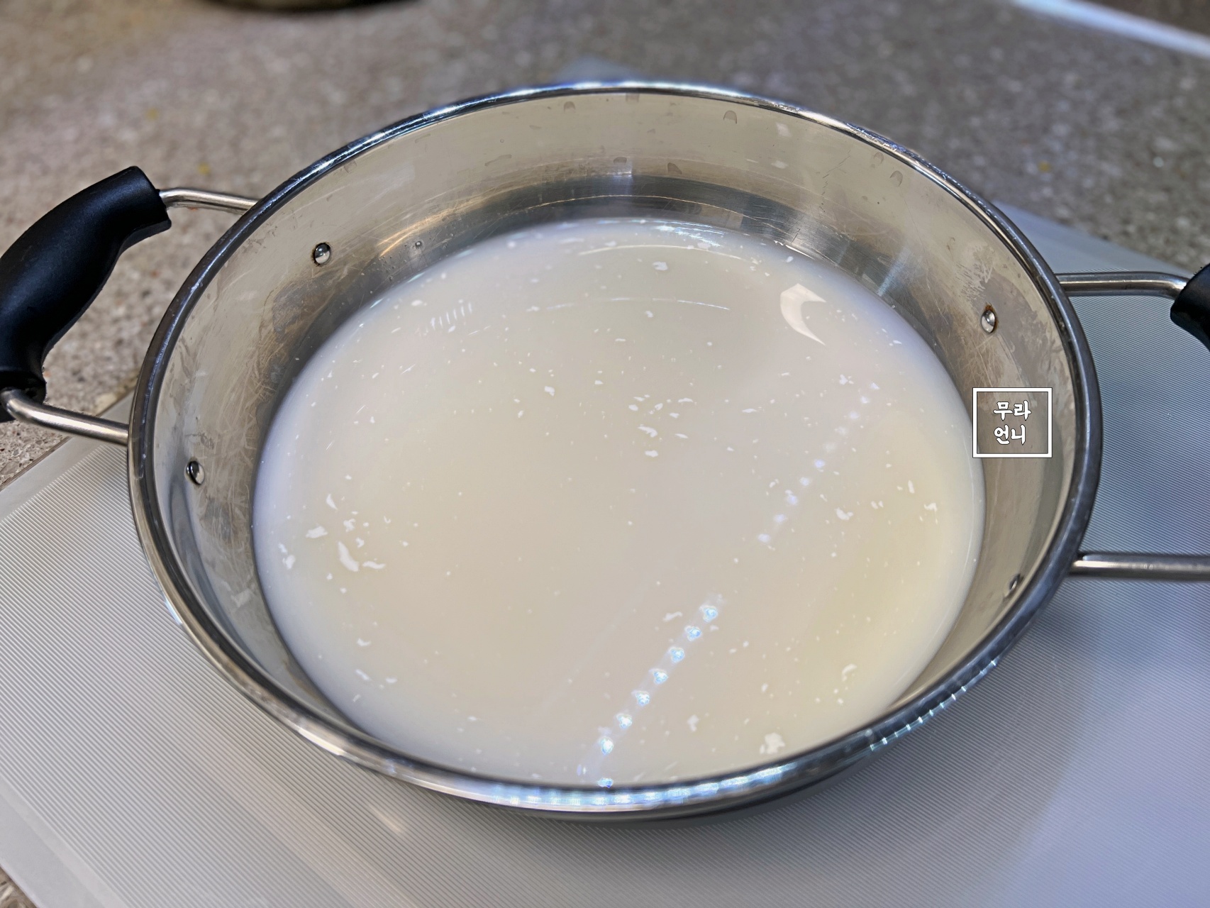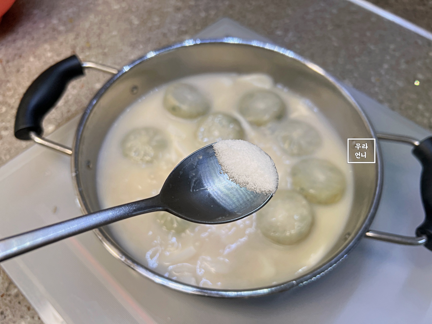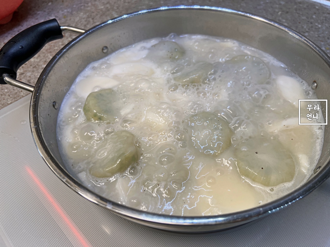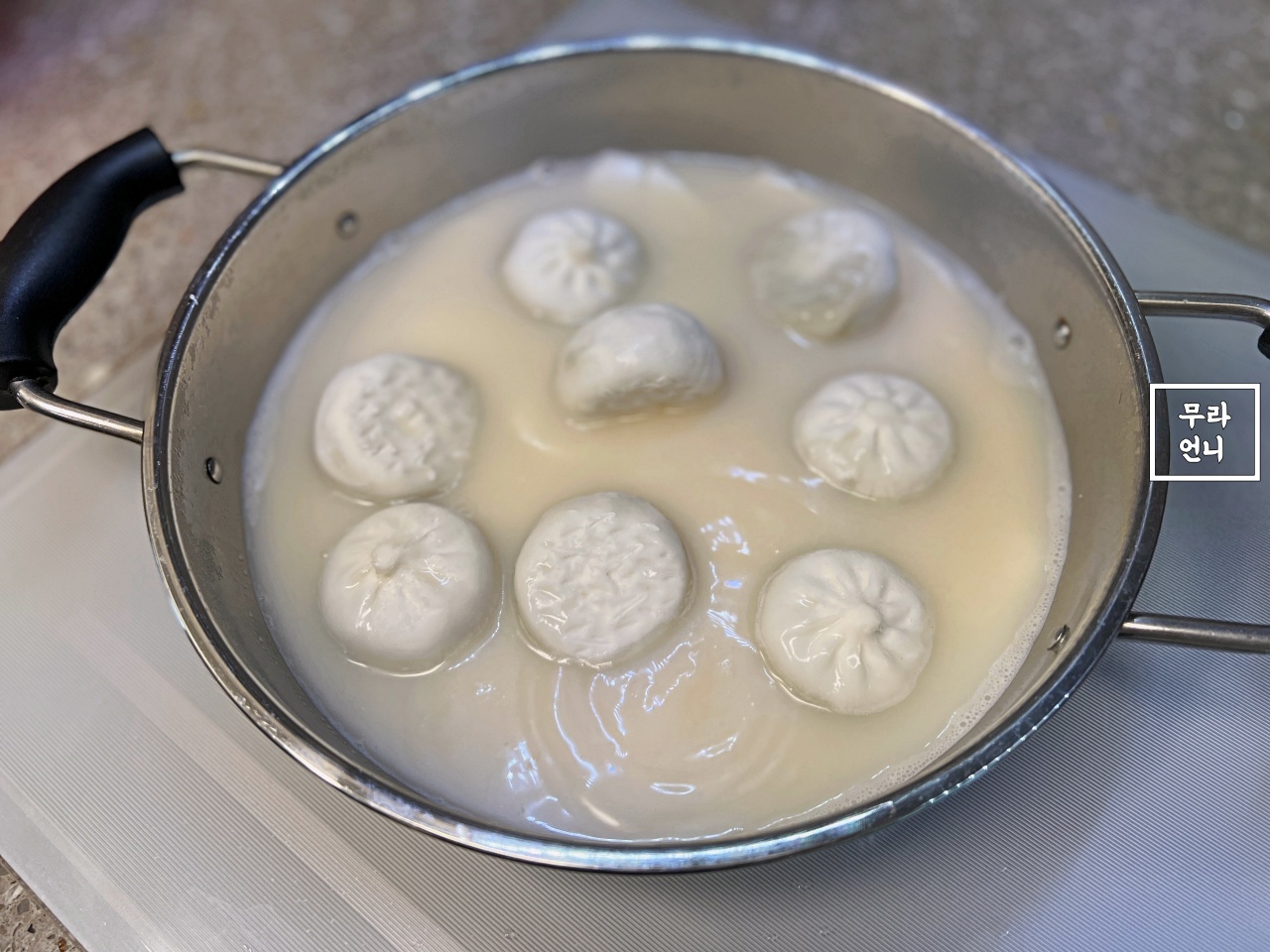 이제 본격적으로 만둣국을 끓여 볼게요!