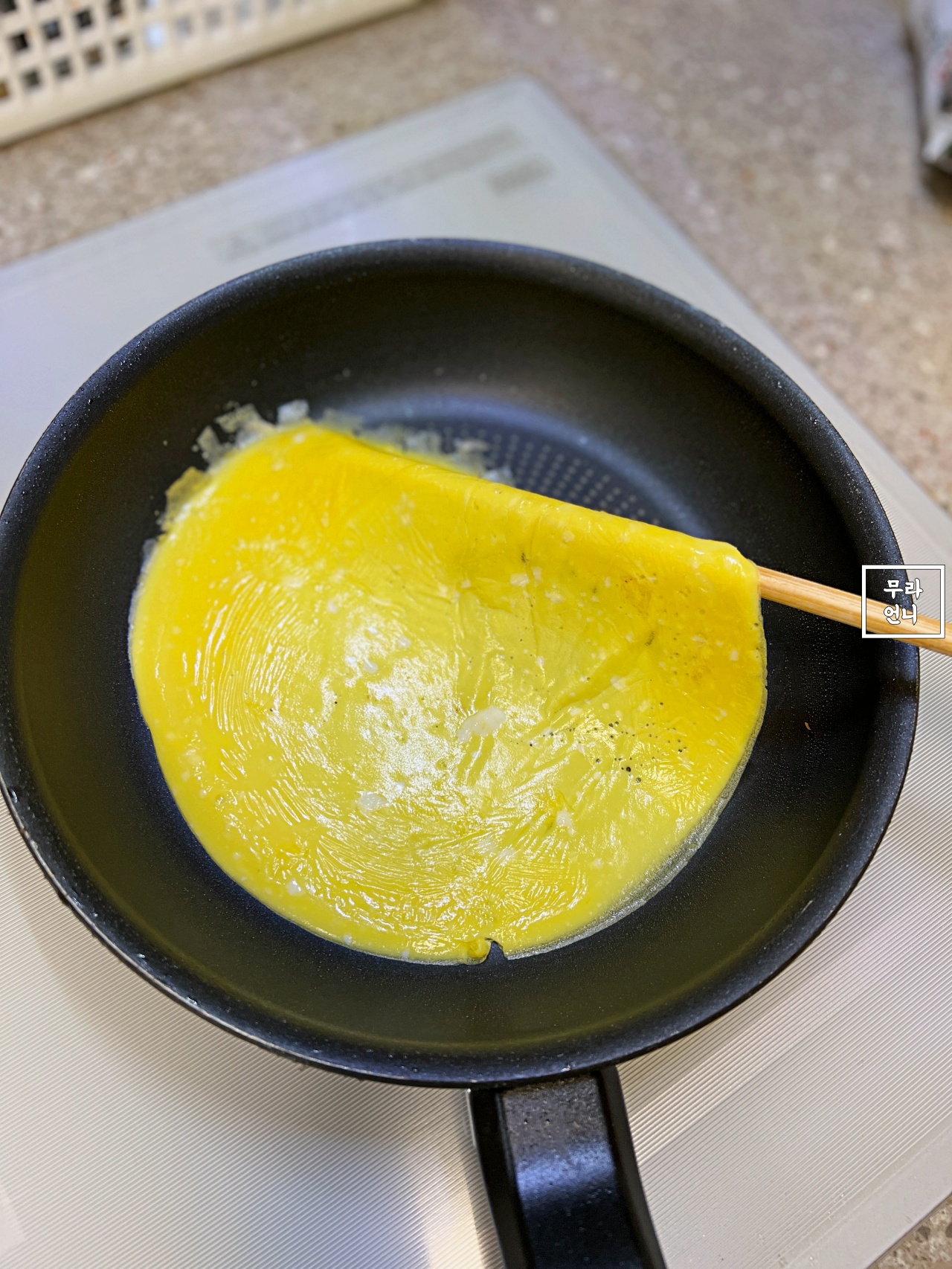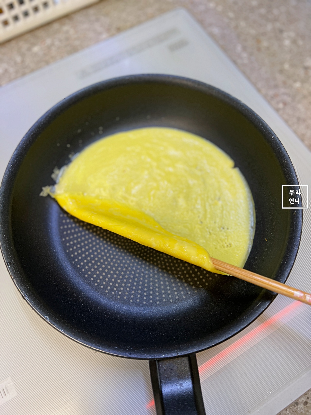 따로 지단을 부쳐서 올려주는 방법이 있는데요
