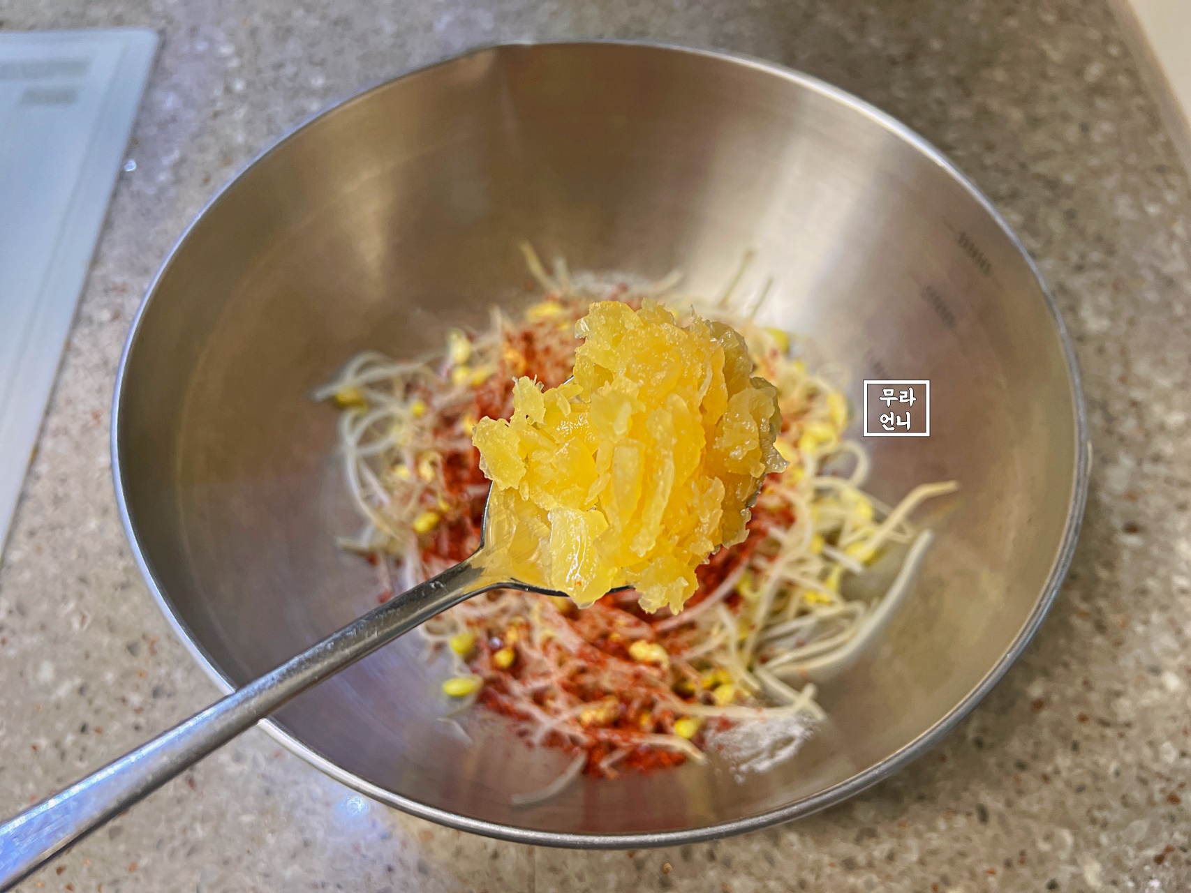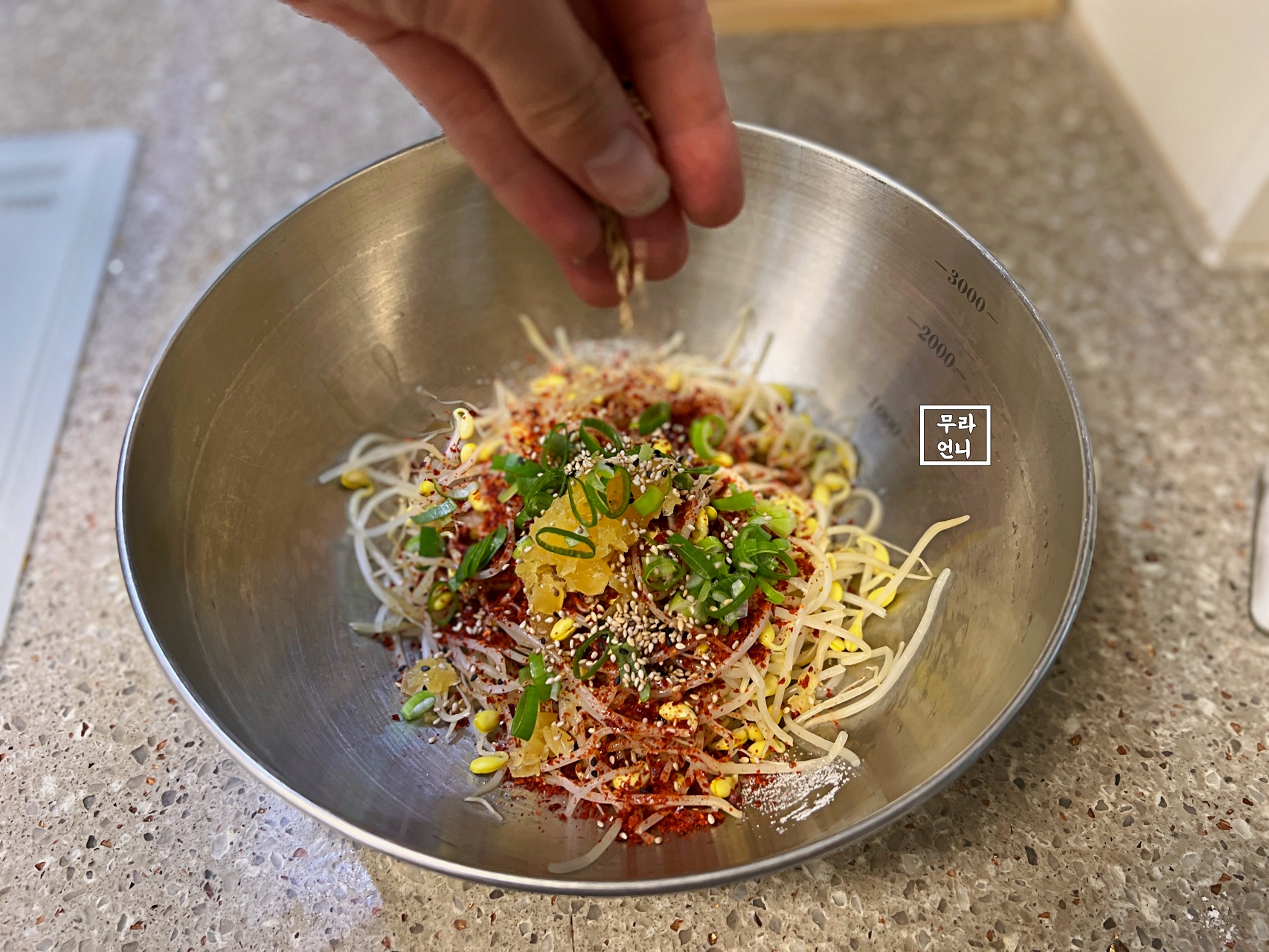05. 볼에 콩나물과 양념장을 섞고 버무려 주세요