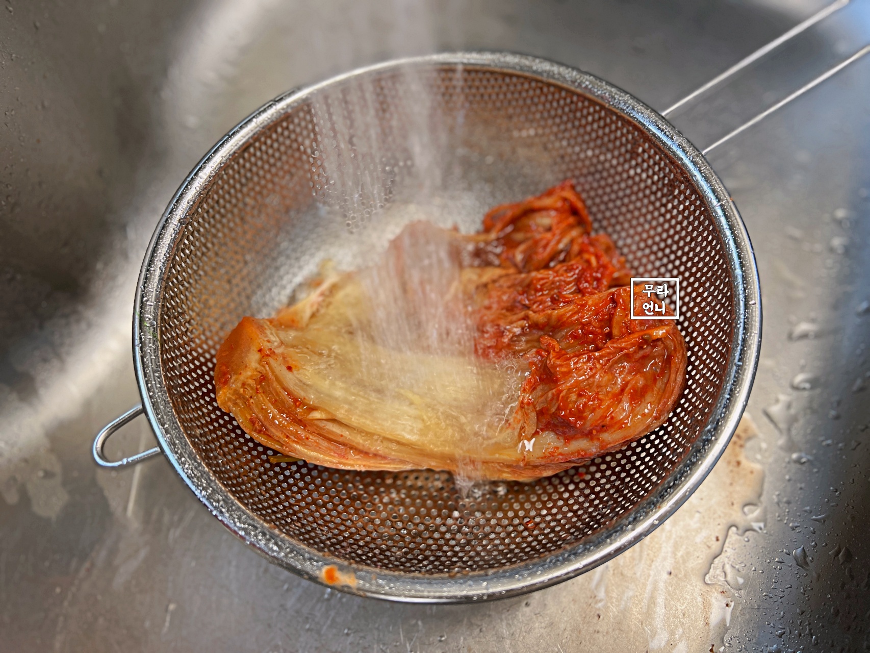 김치양념을 잘 씻어주는 거예요!