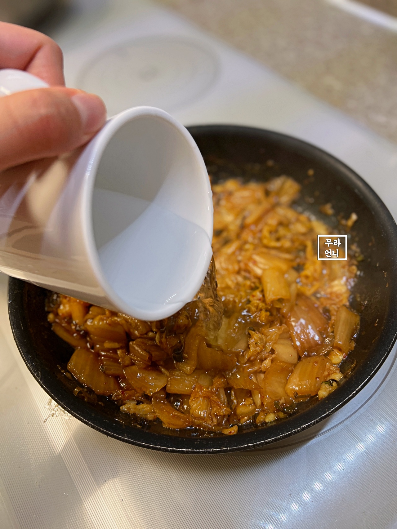 썰어놓은 김치를 넣고