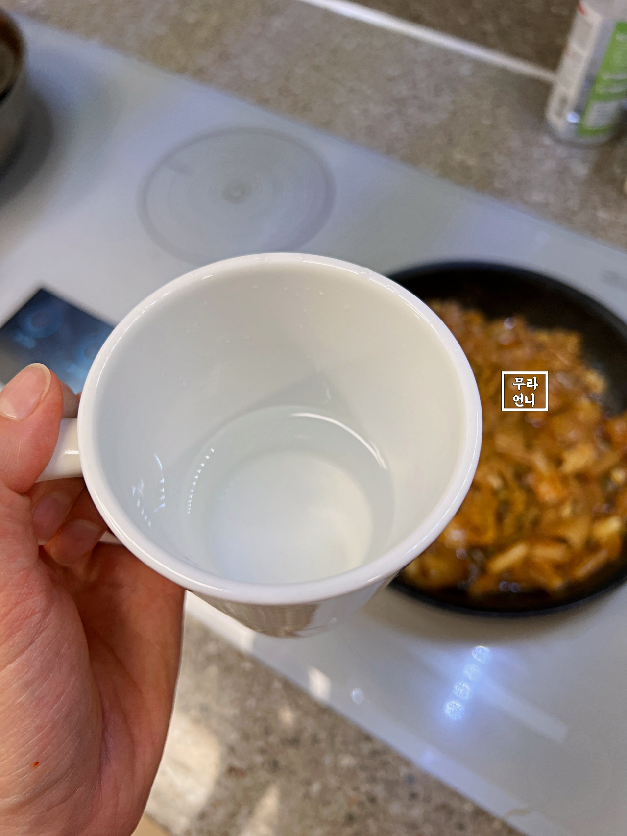 그래서 컵 기준으로 반 컵 정도를 붓고