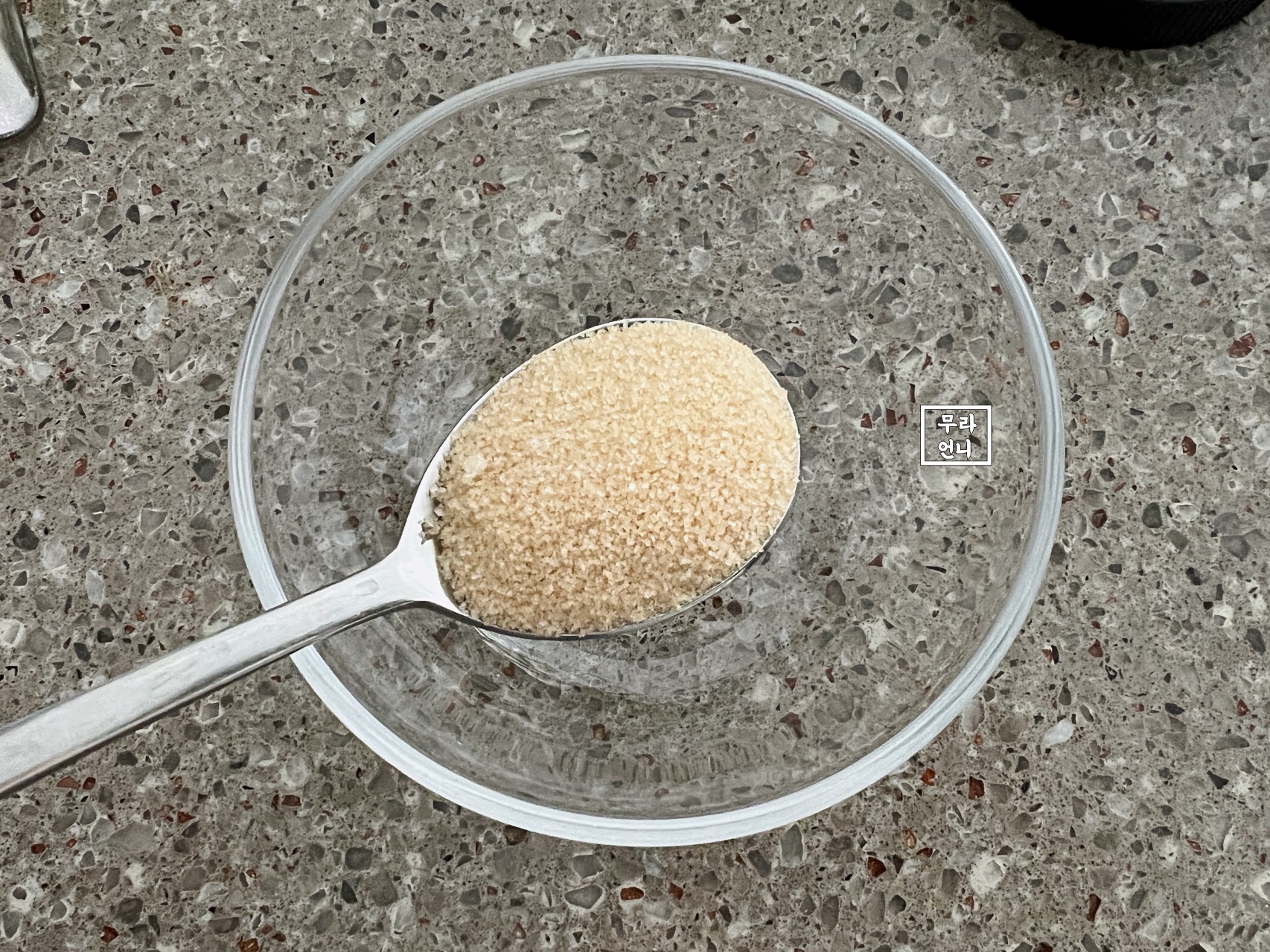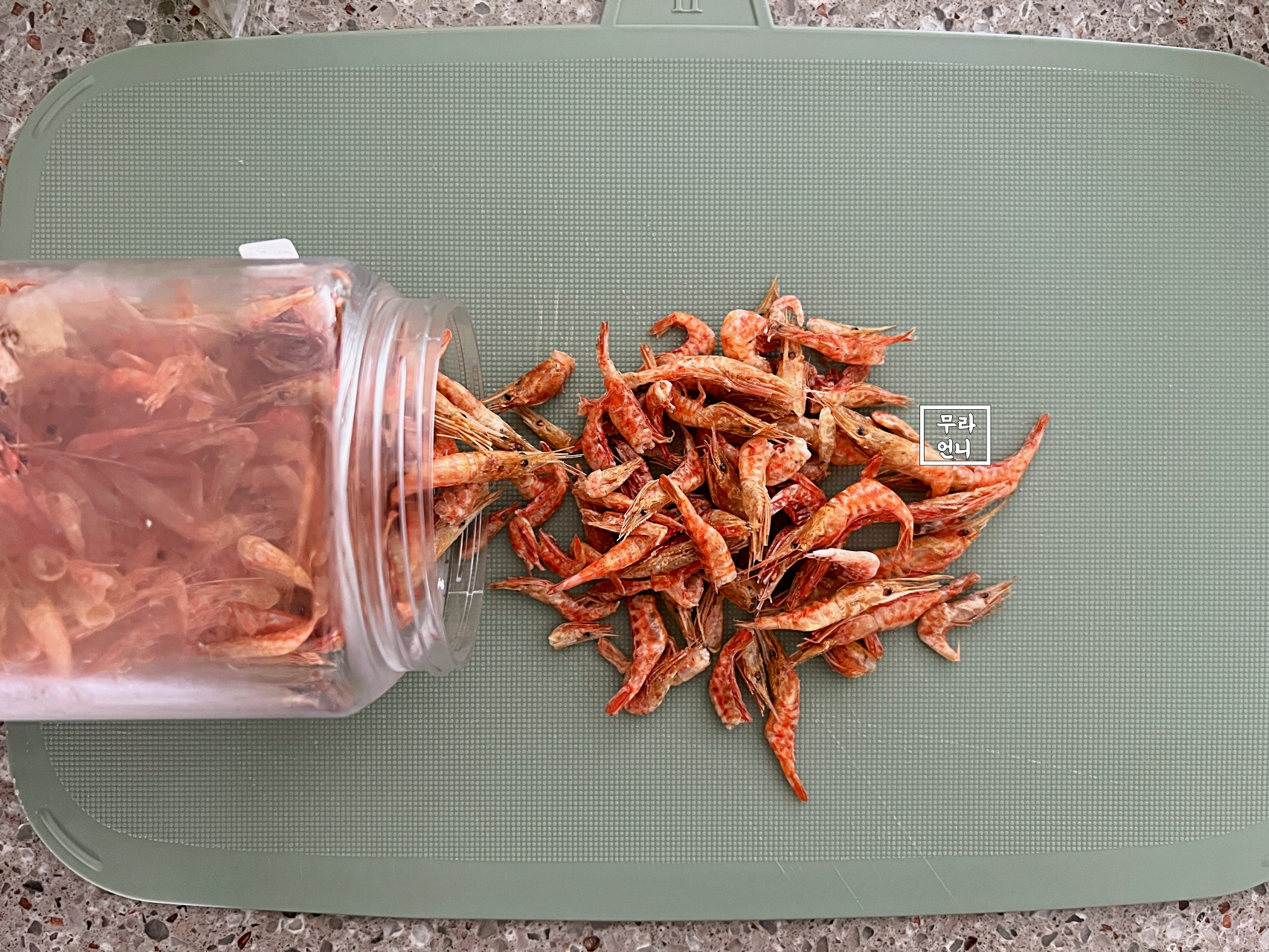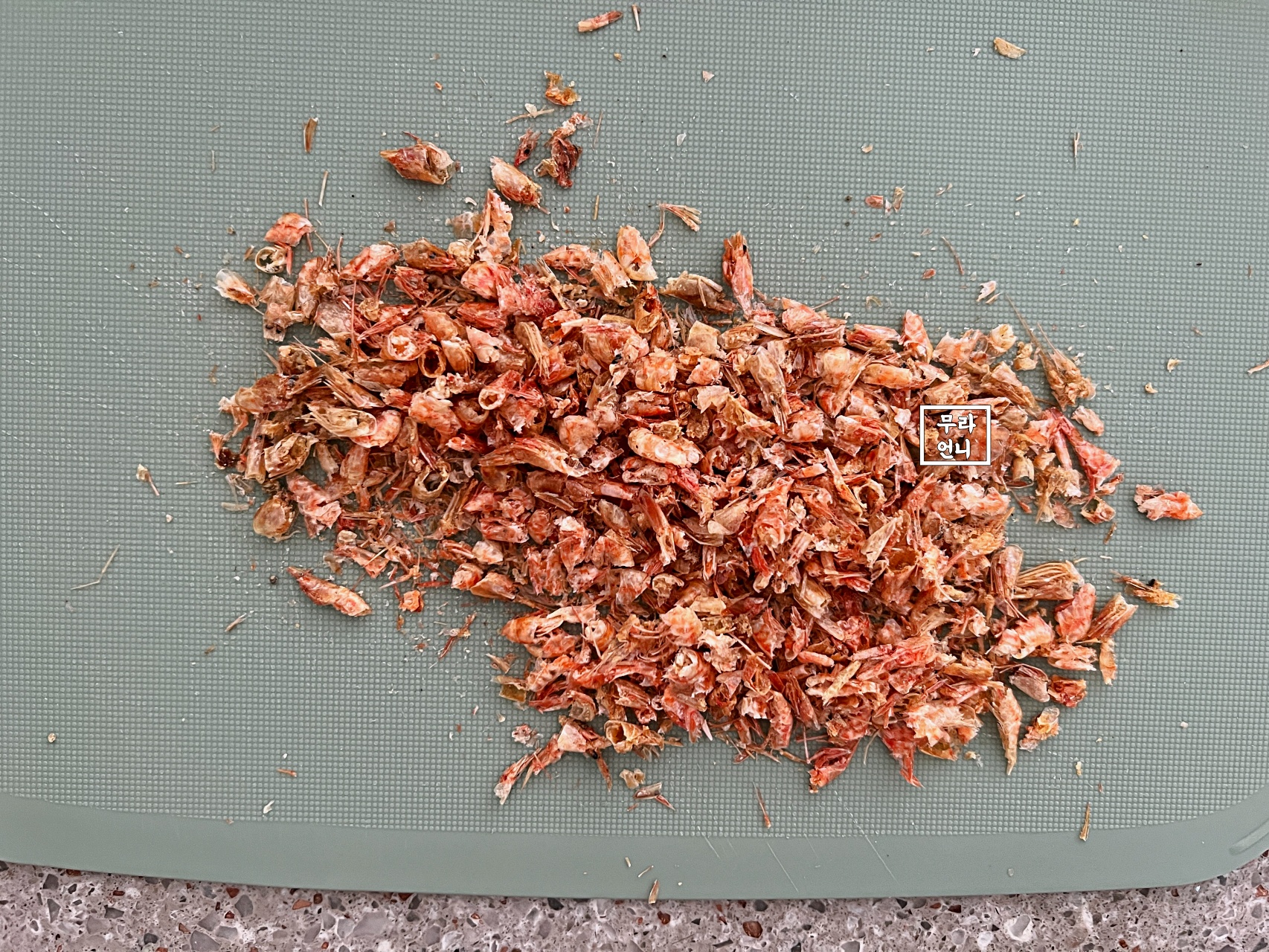 3. 건새우 한 줌은 잘게 썰어주기(믹서기에 가는 것 추천)