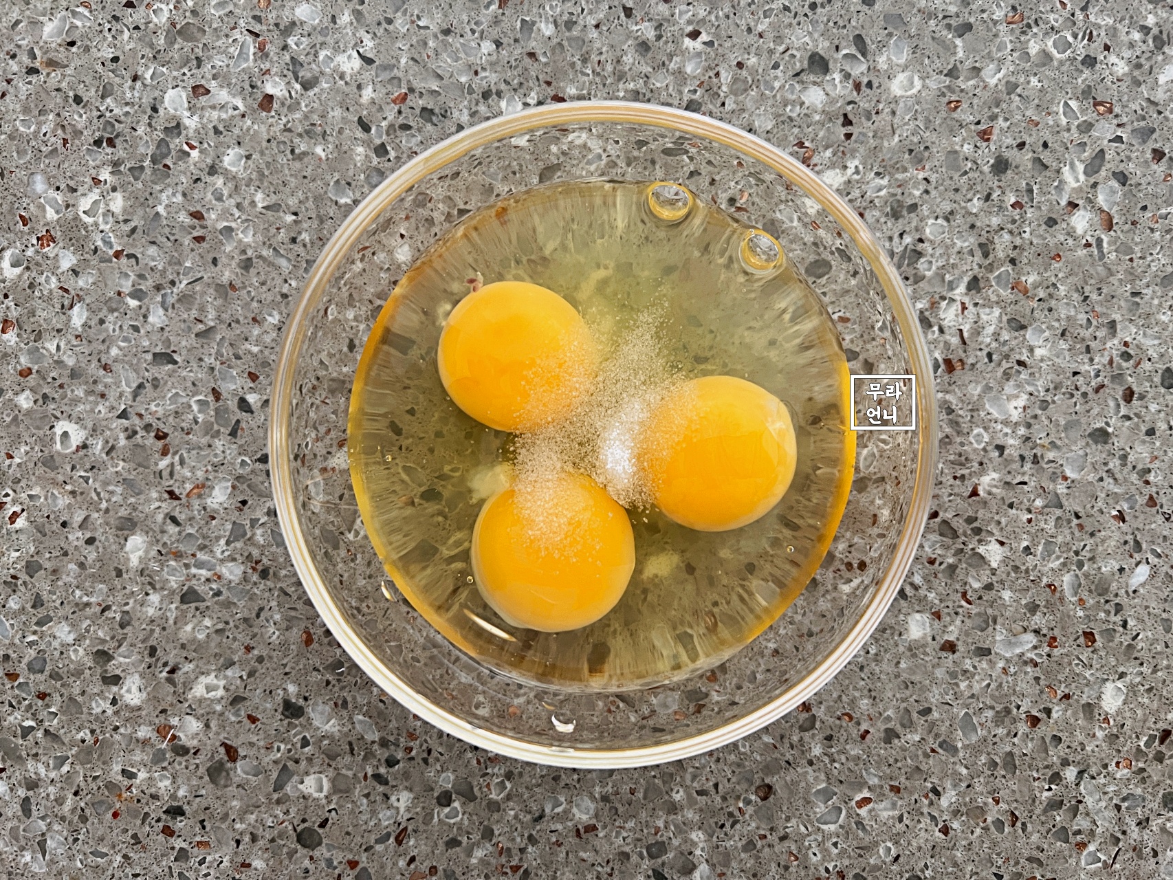 6. 계란 3개에 소금을 약간 넣어서 잘 풀어 주세요