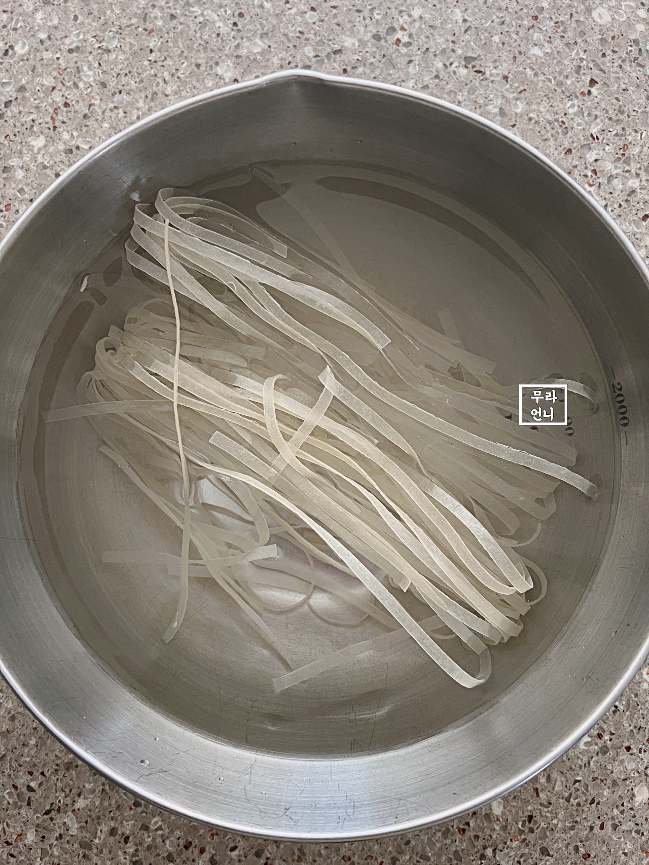 쌀국수를 따뜻한 물에 오랫동안 불리는 과정이