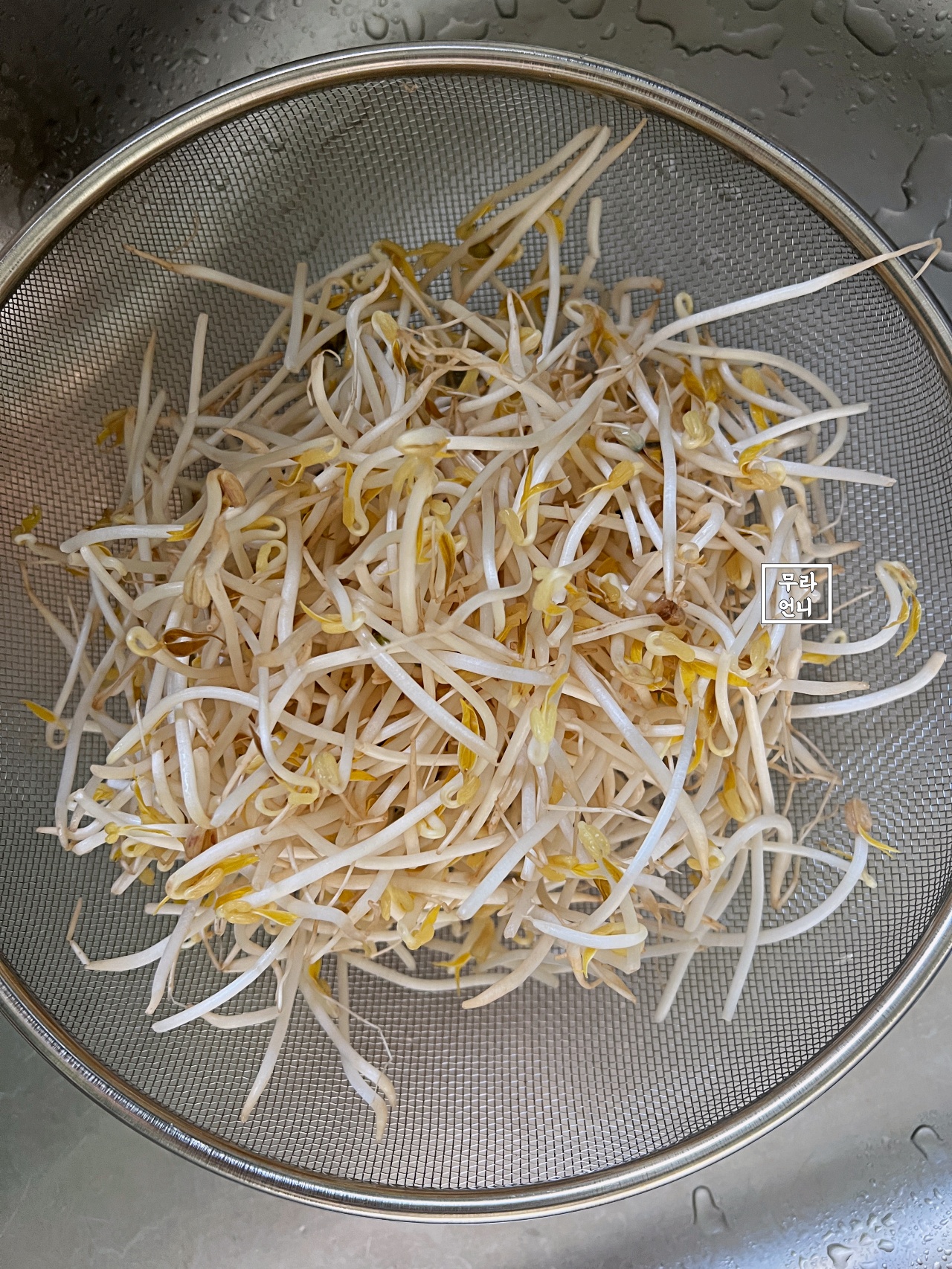 숙주나물을 흐르는 물에 깨끗하게 씻어 줍니다