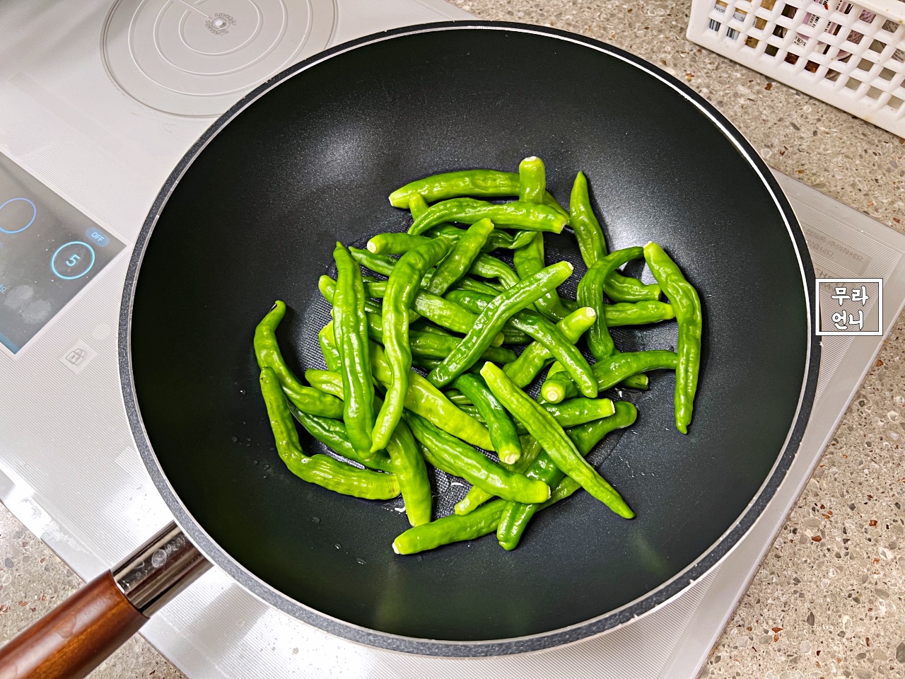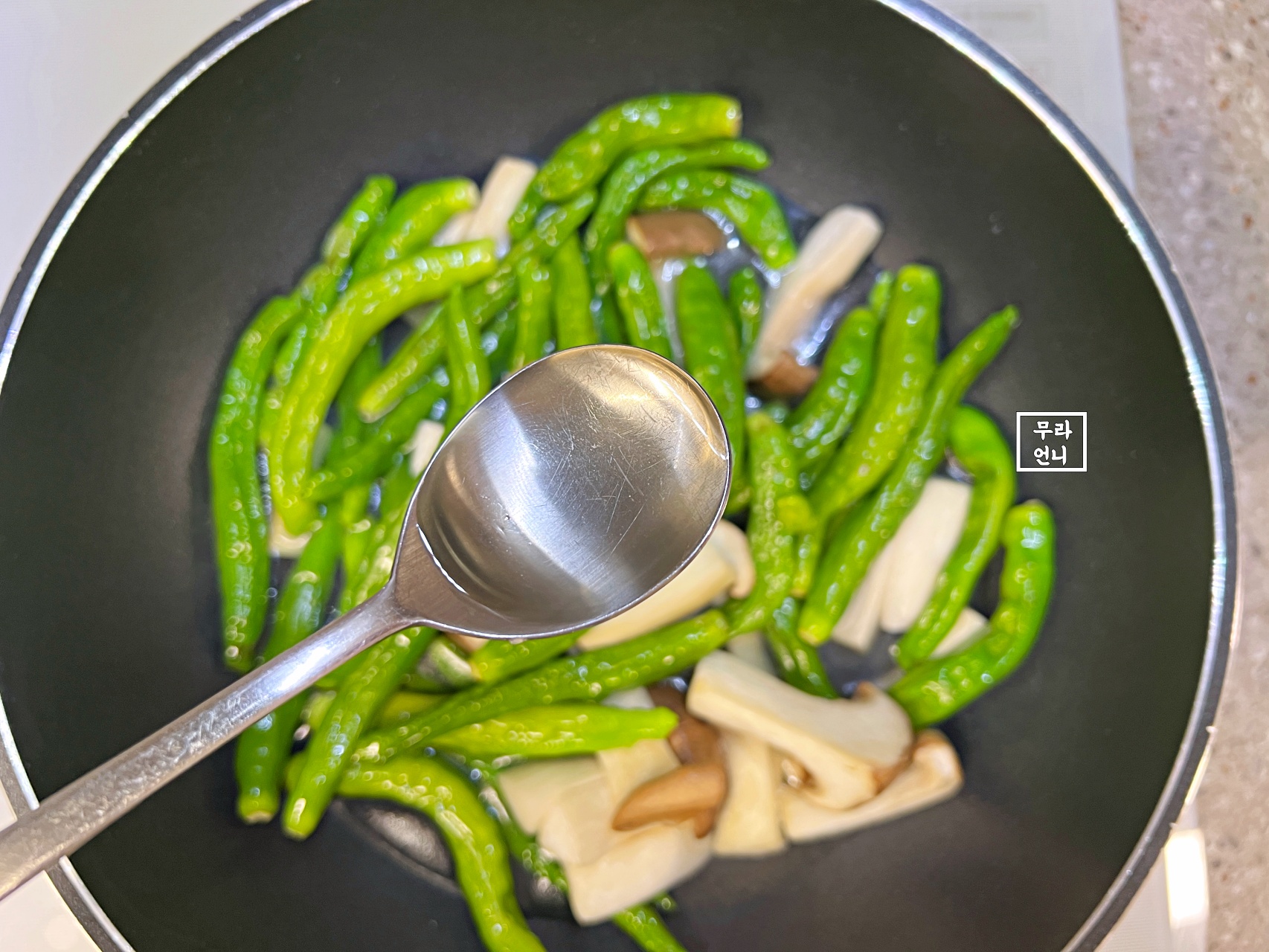 중간불에서 꽈리고추를 볶으면