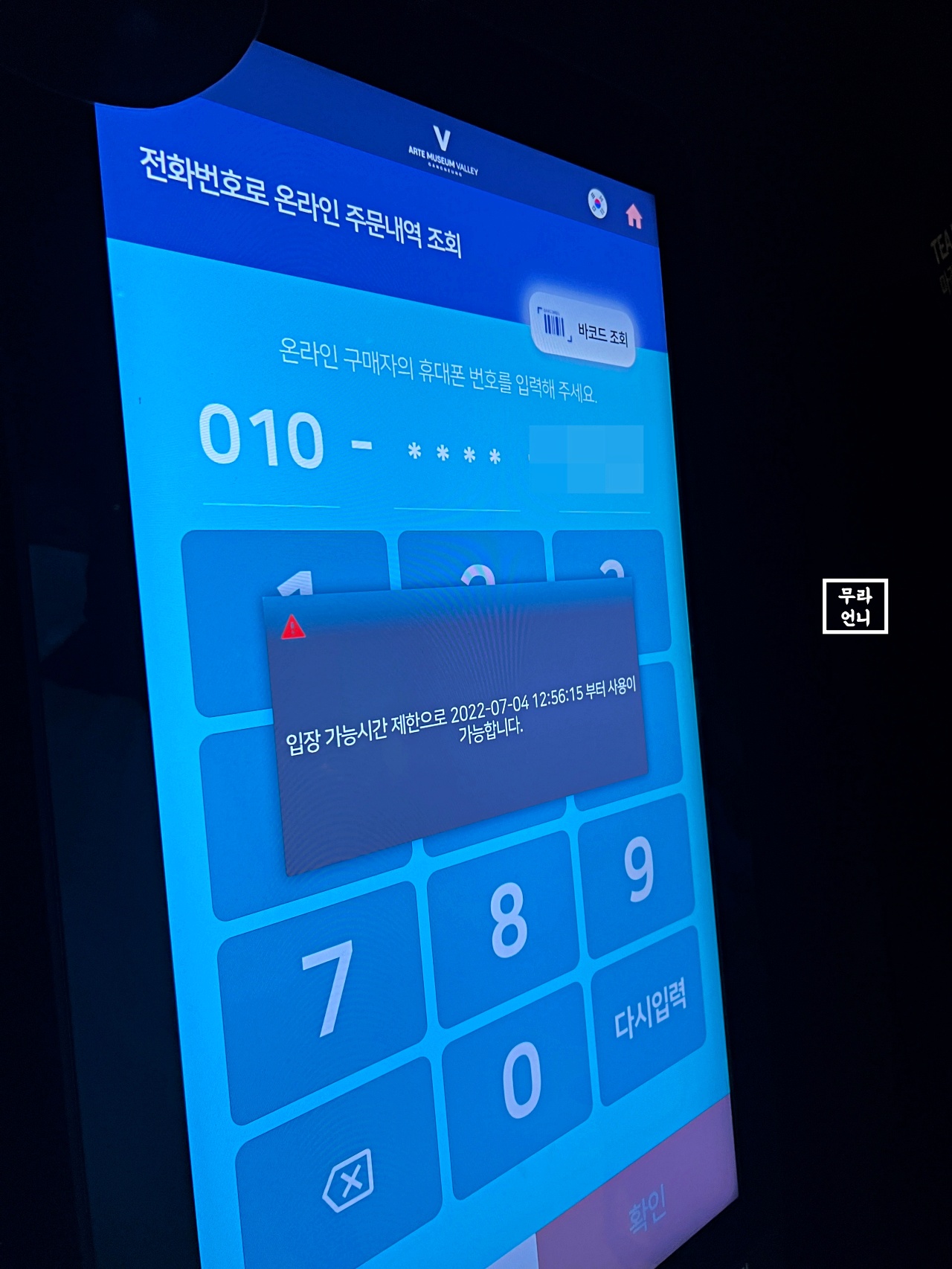 무인발권기에서 발권하기까지 시간이 남아
