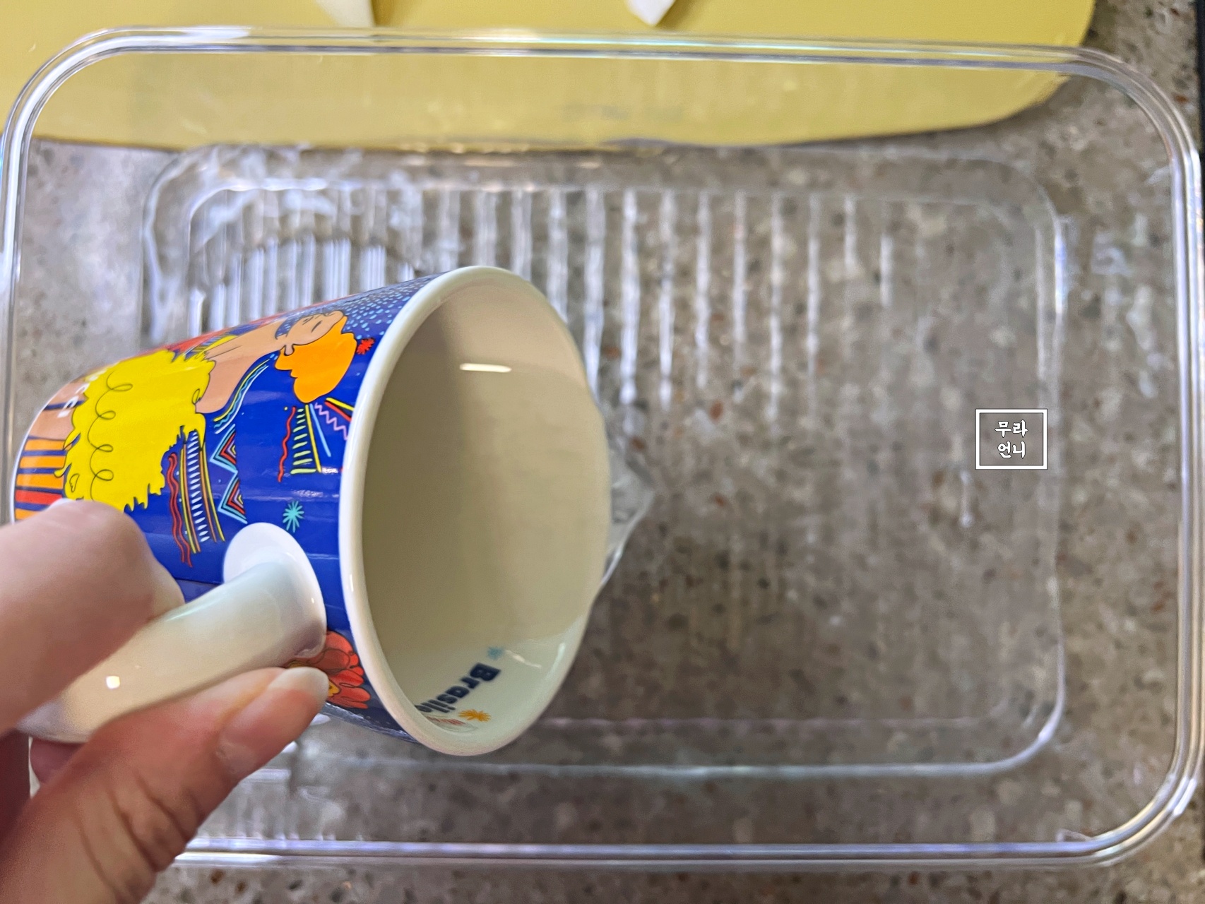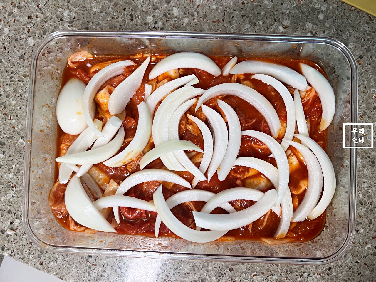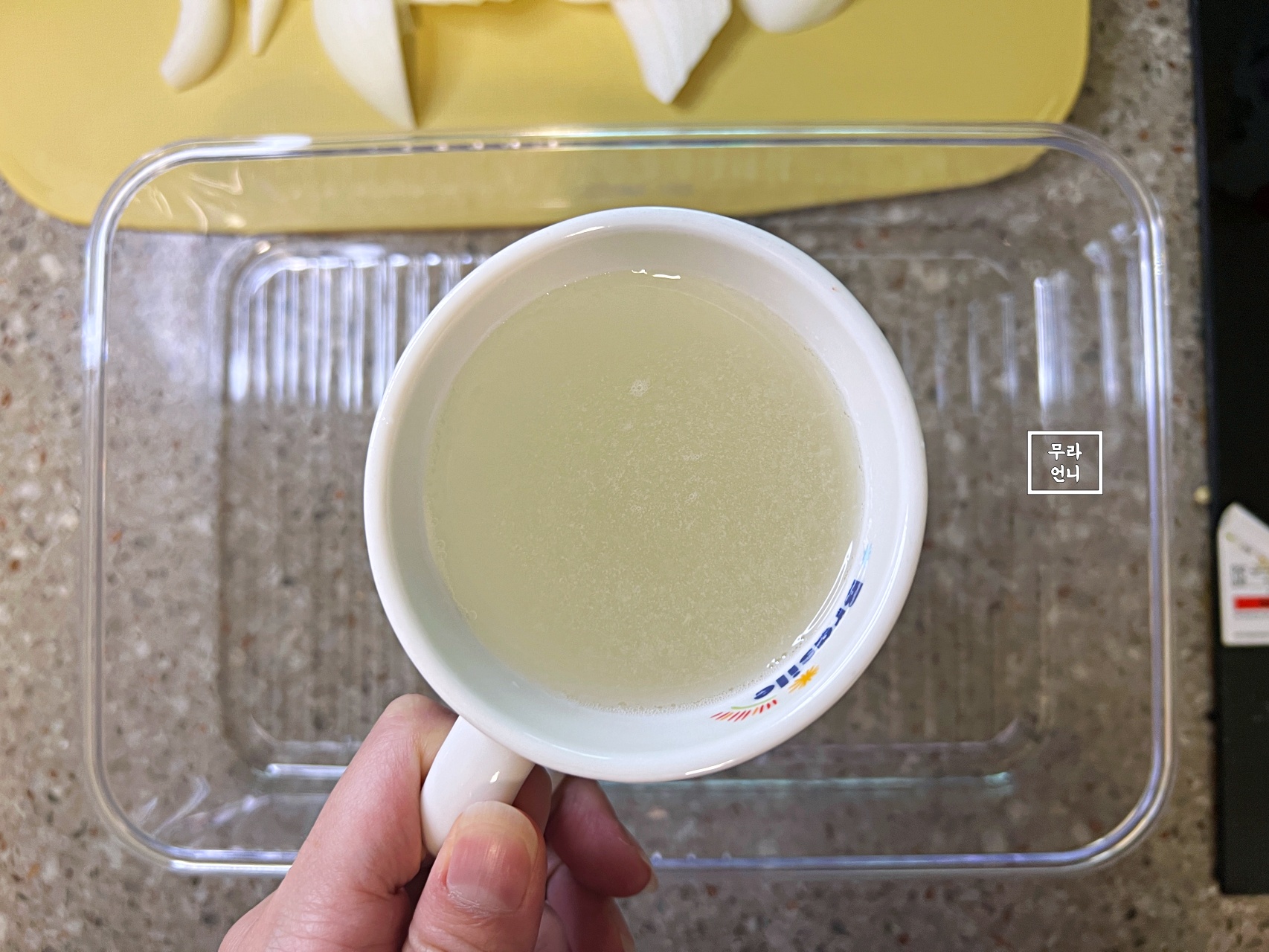 혹은 넓은 통에 아예 양념까지 다 넣어서