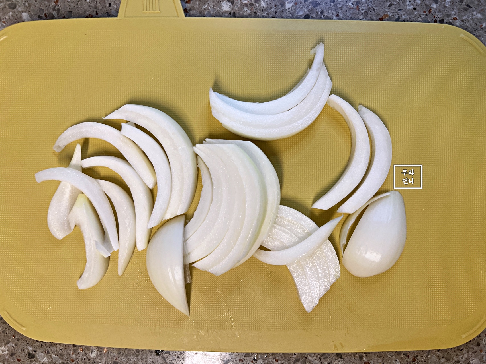재료에 양파는 1개 혹은 반 개라고 적었는데