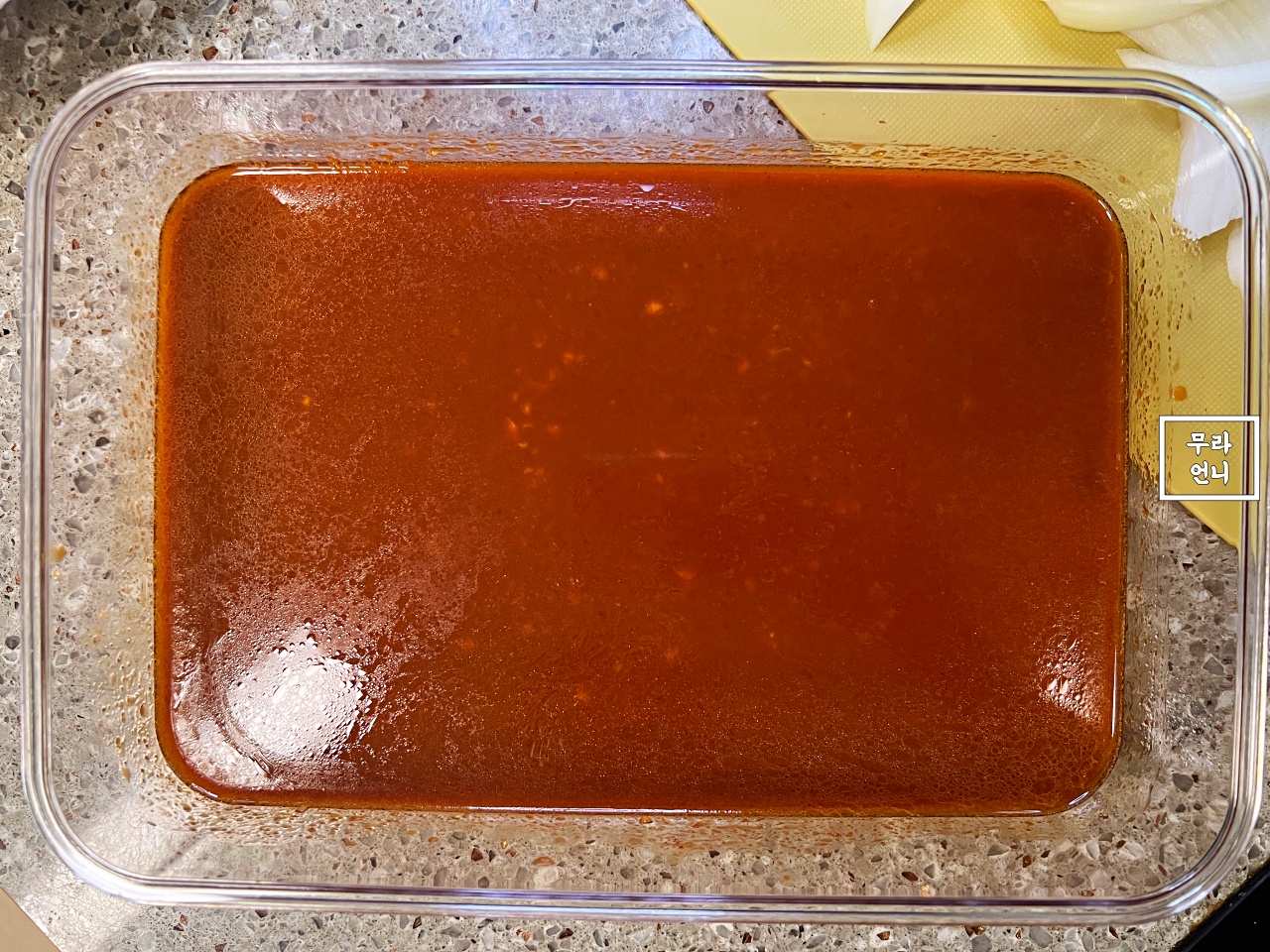다른 볼에 양념들을 잘 섞은 뒤 넣어주는 게 좋구요