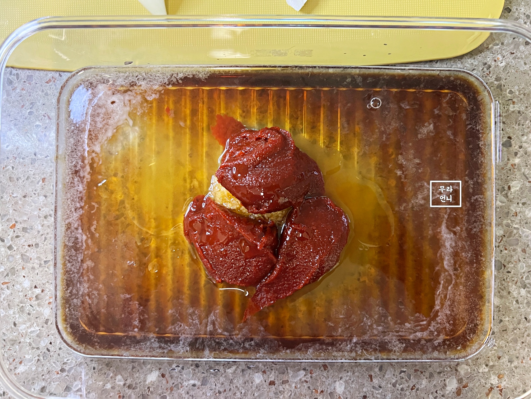 사실 저처럼 넓은 통에 양념장을 넣을 때에는