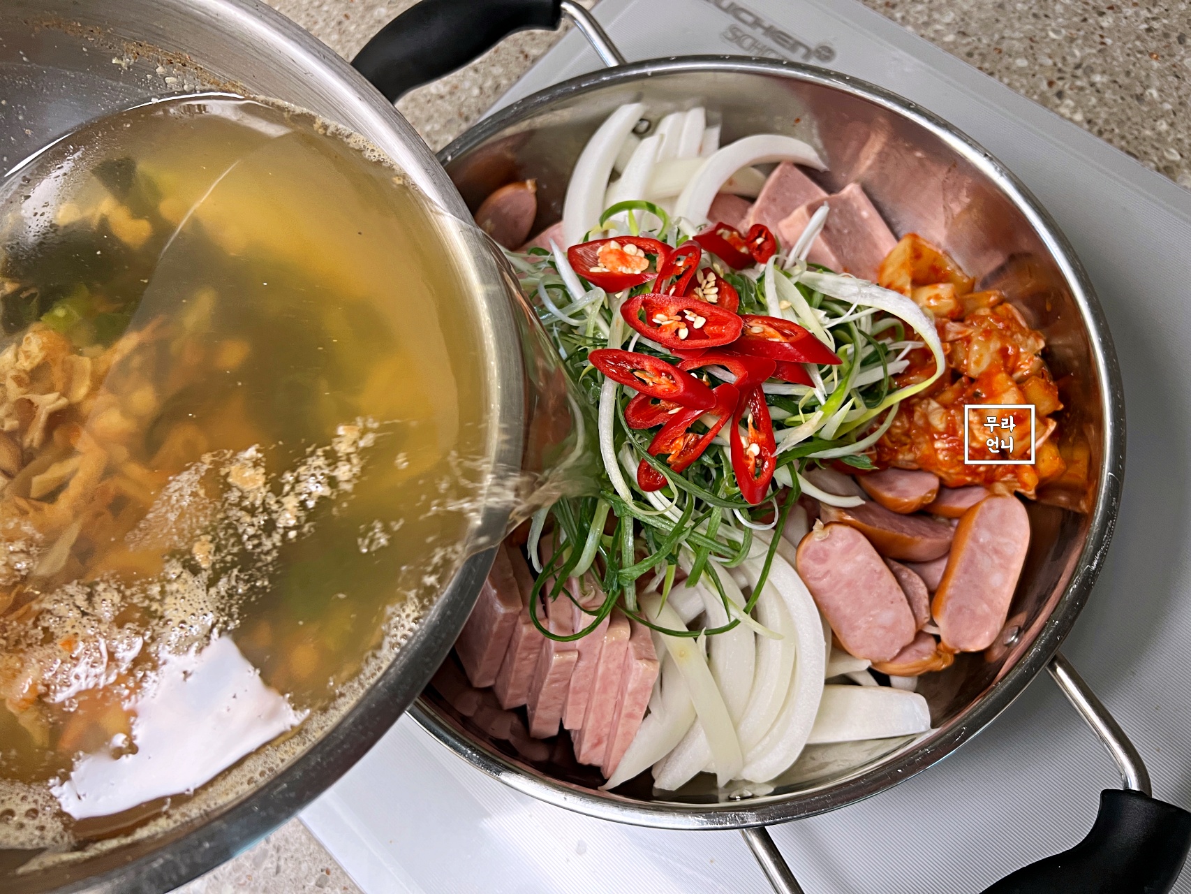 부대찌개를 위한 육수 만들기