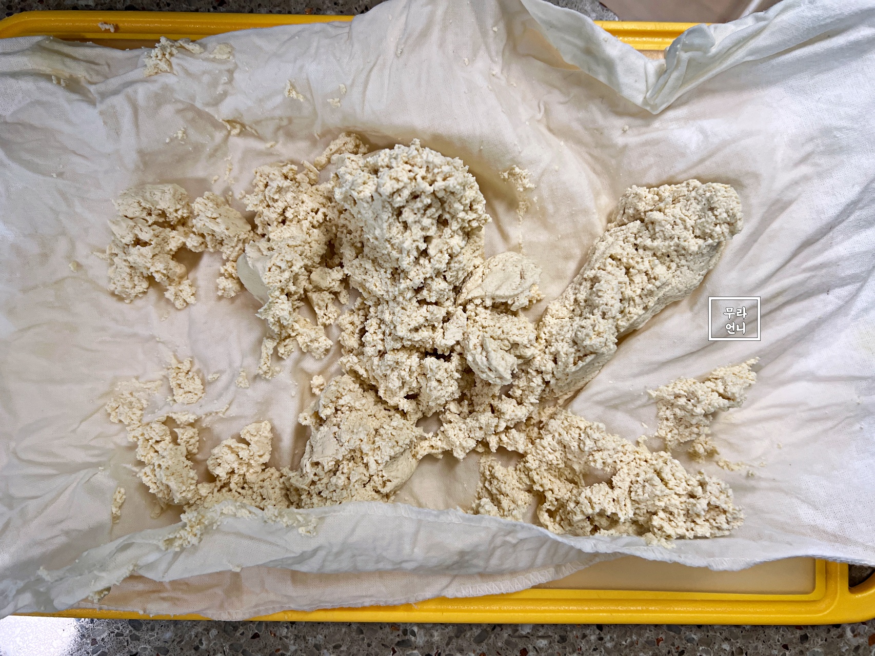 면보에 두부를 넣어 꽉 짜주세요
