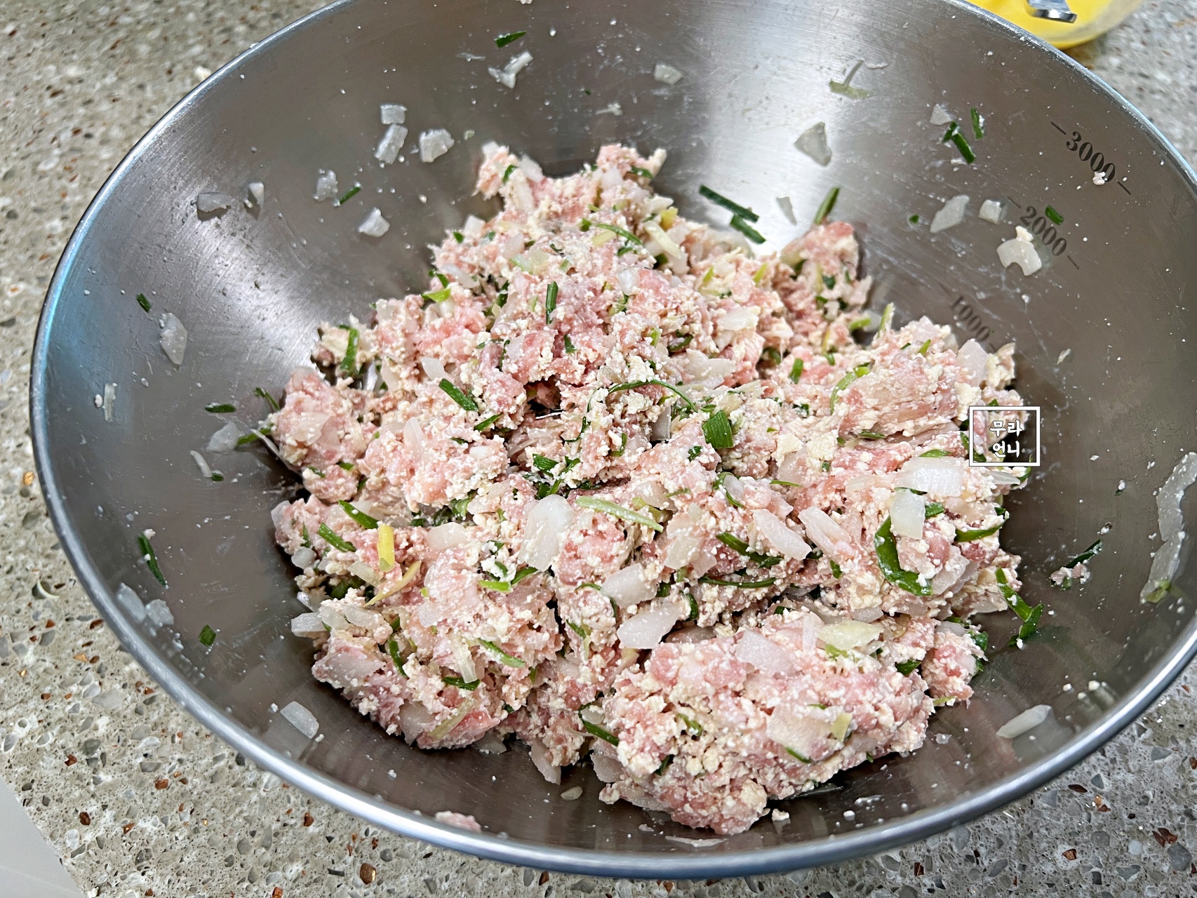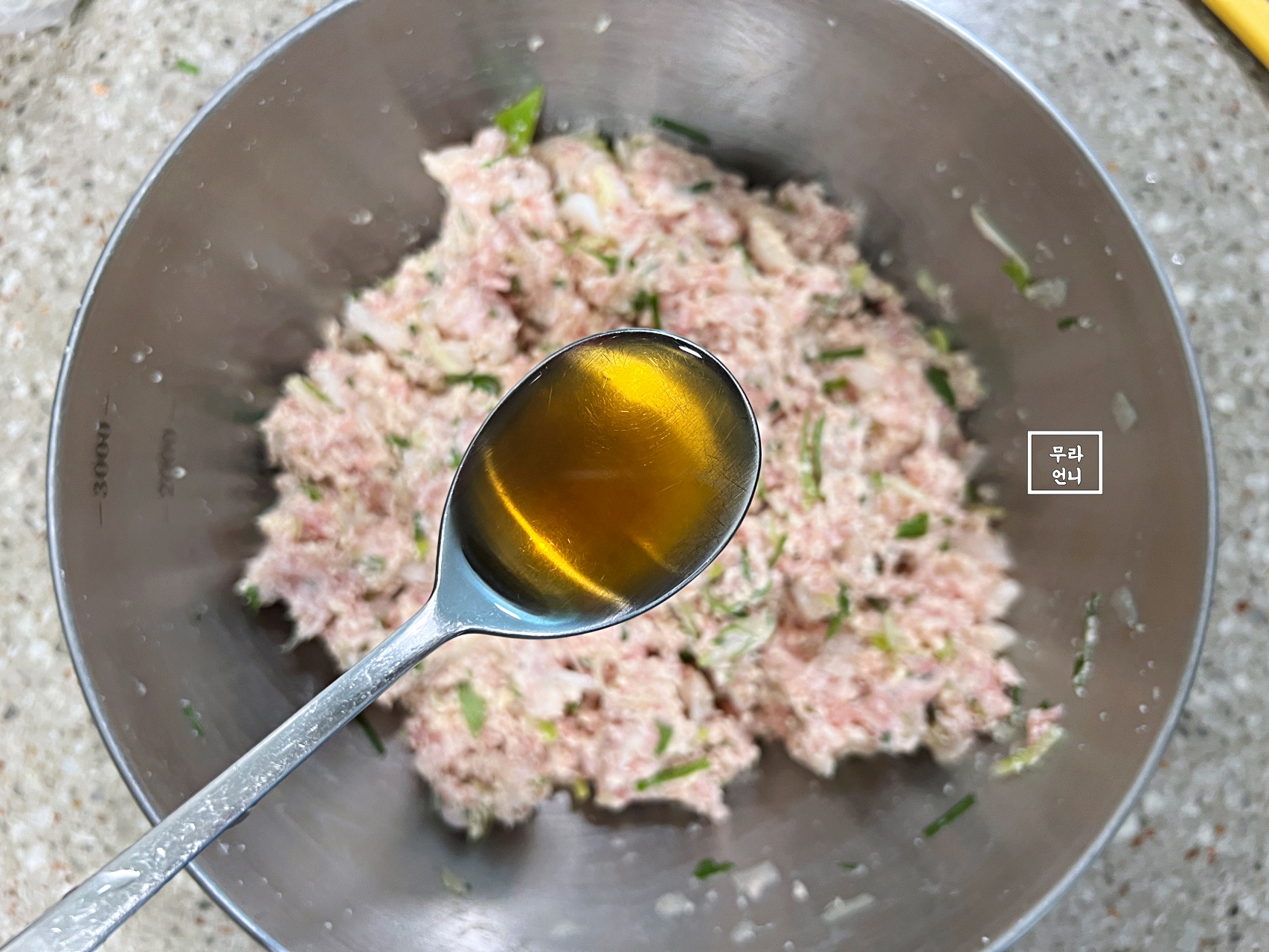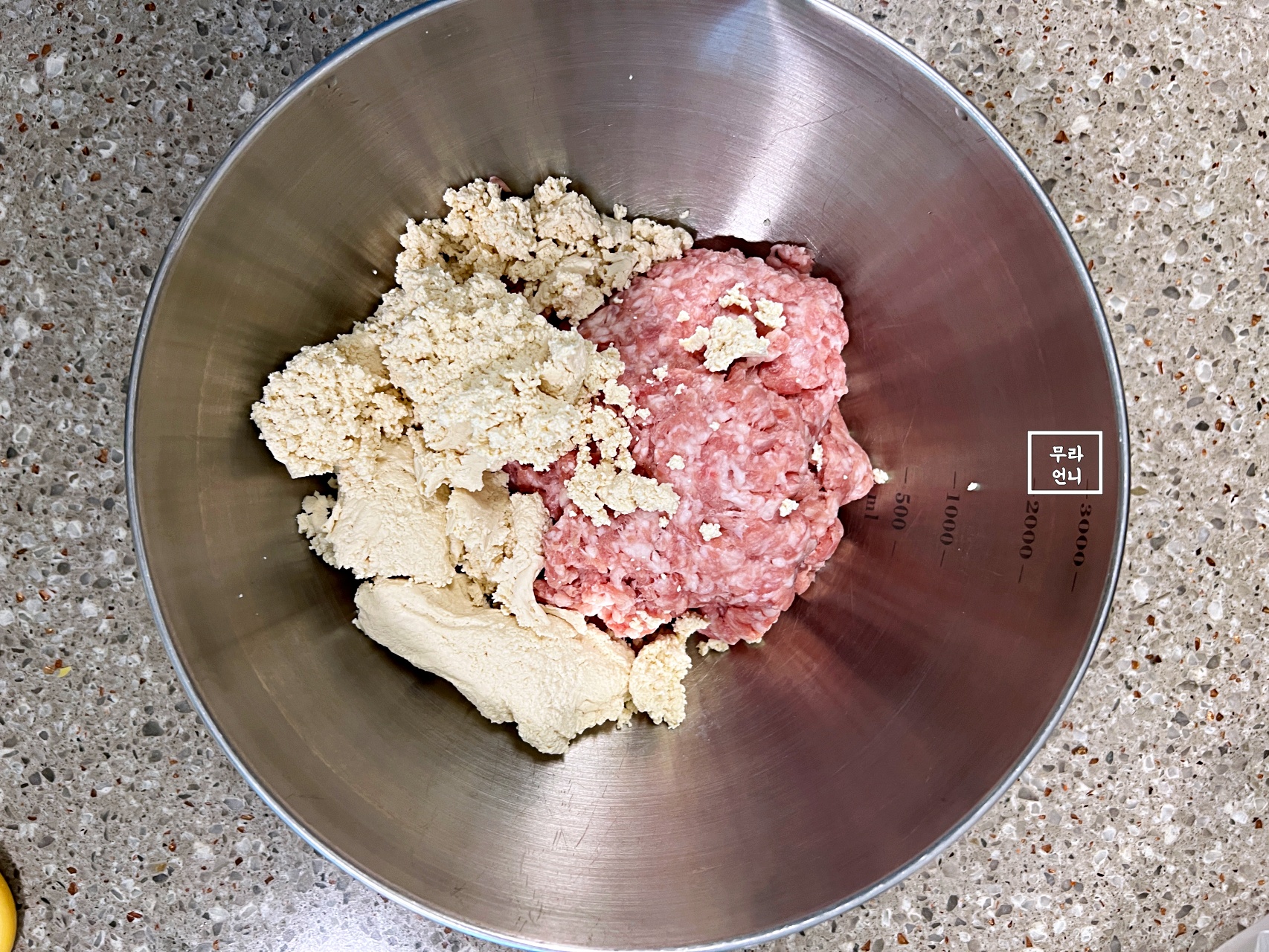 처음에 섞은 건 재료들을 한 번 쓱 섞은 거고