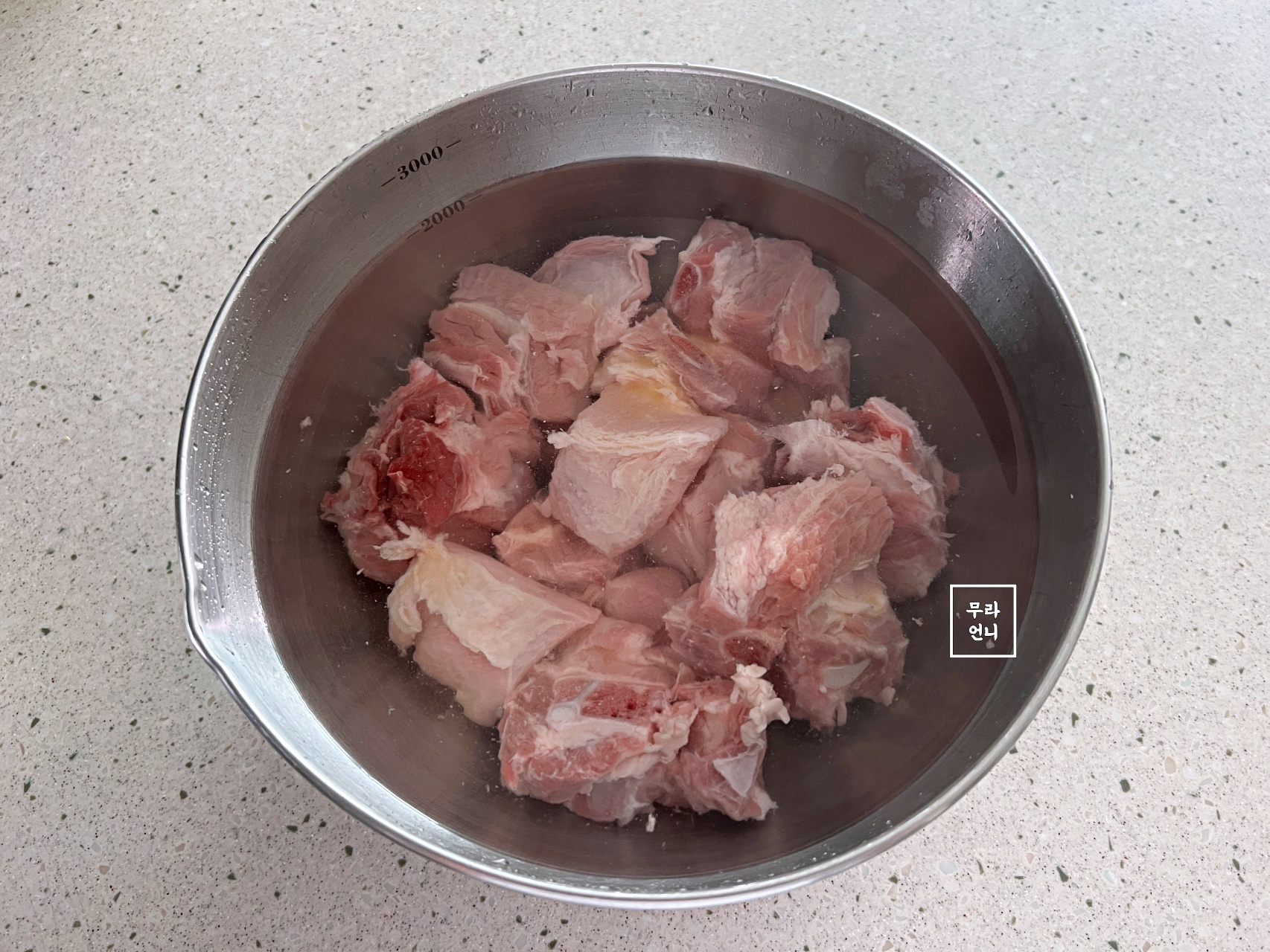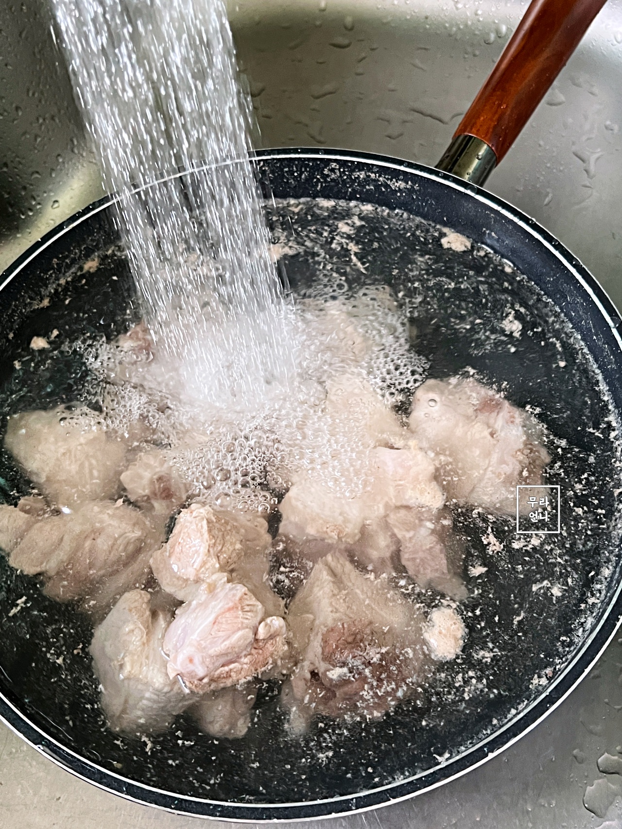 찬물에 돼지고기 넣고