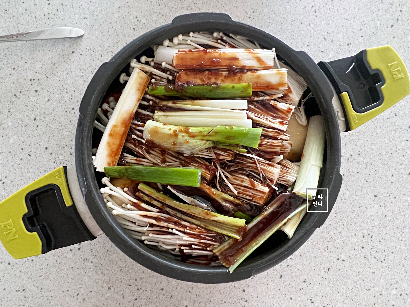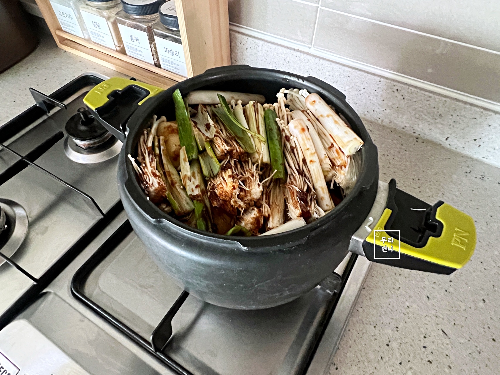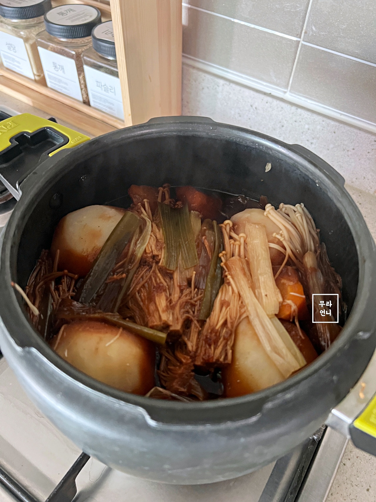 무를 압력밥솥 밑에 깔면