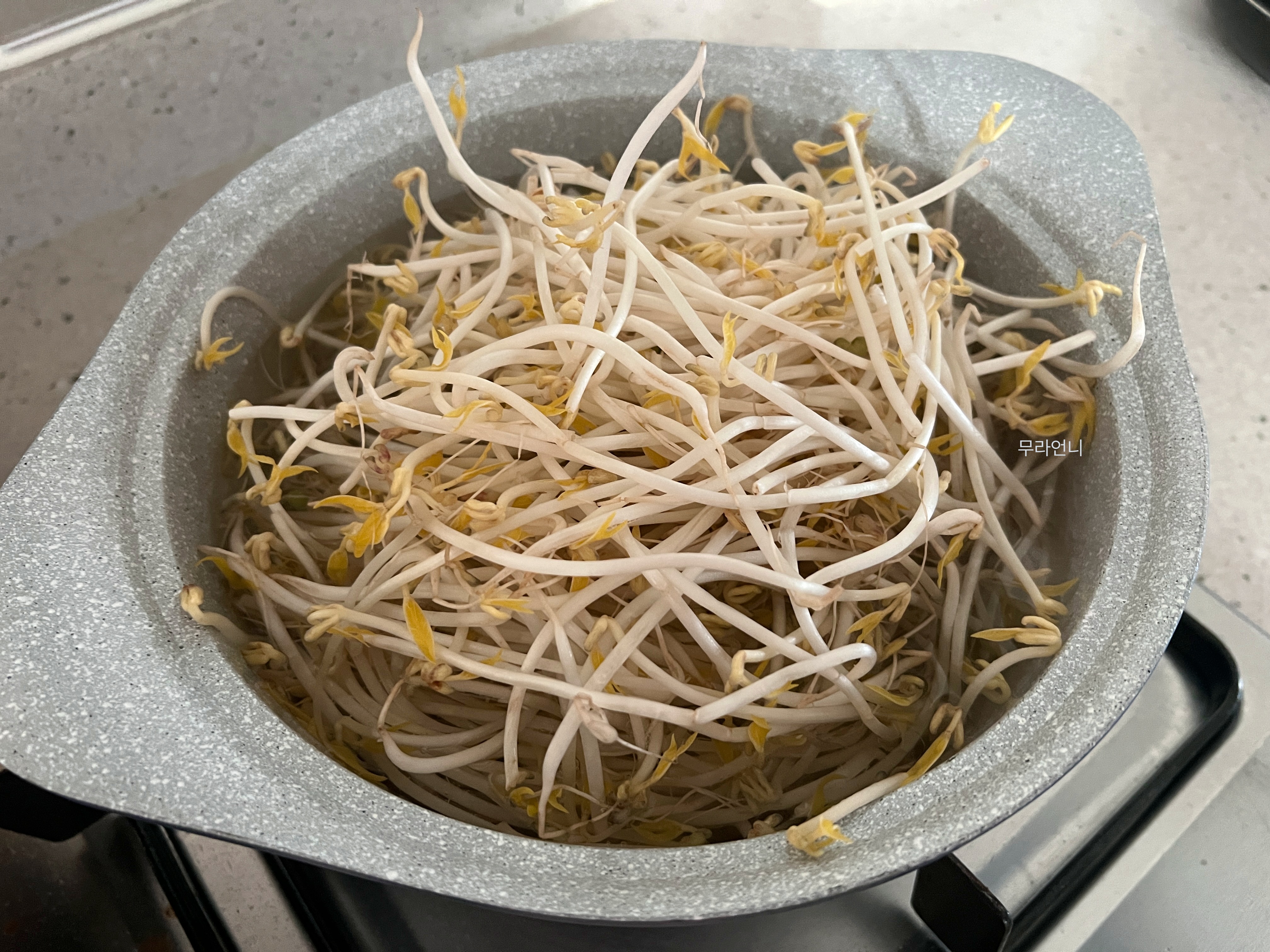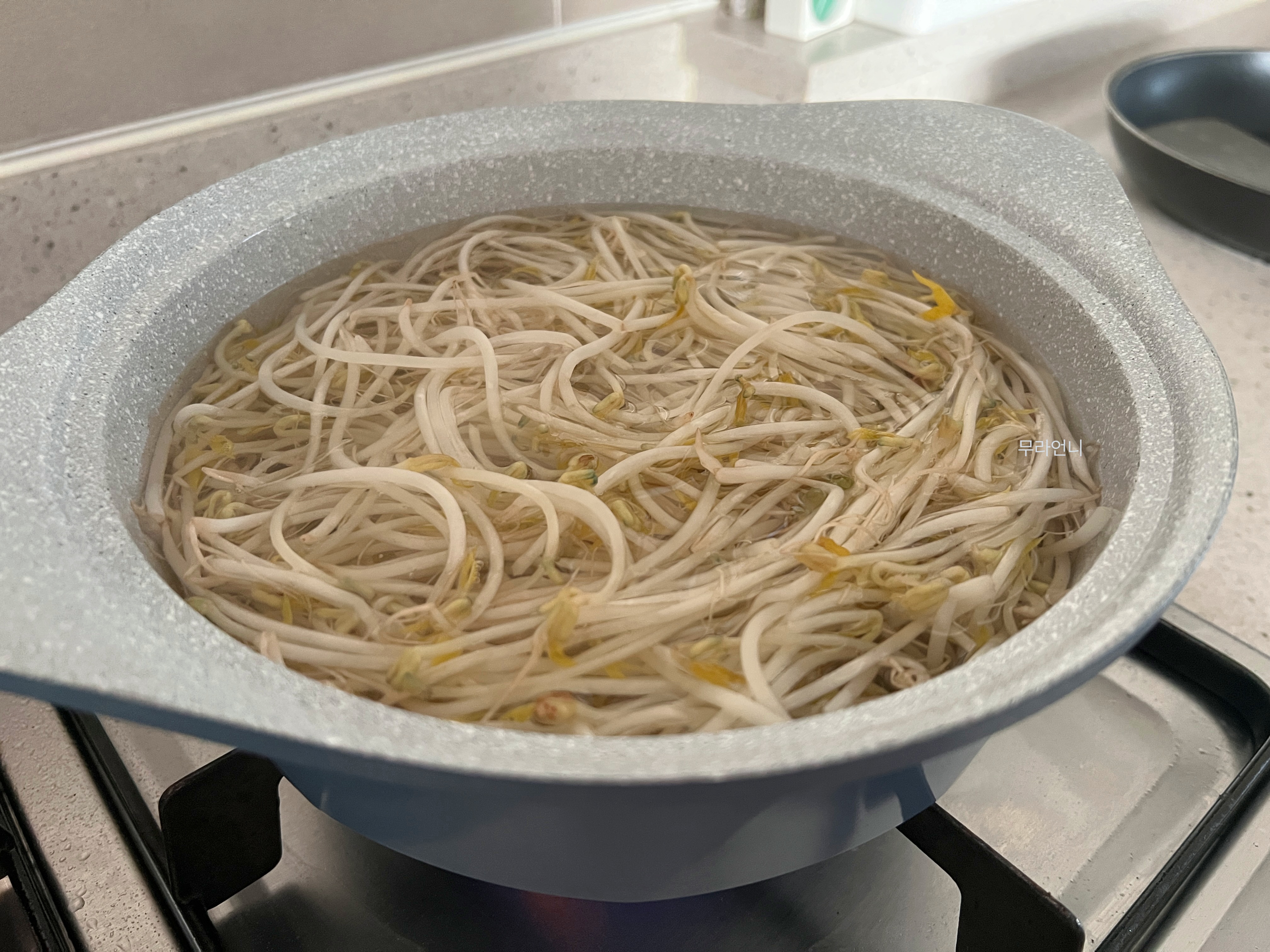 처음에는 숙주나물이 다 물에 잠겨야 하므로