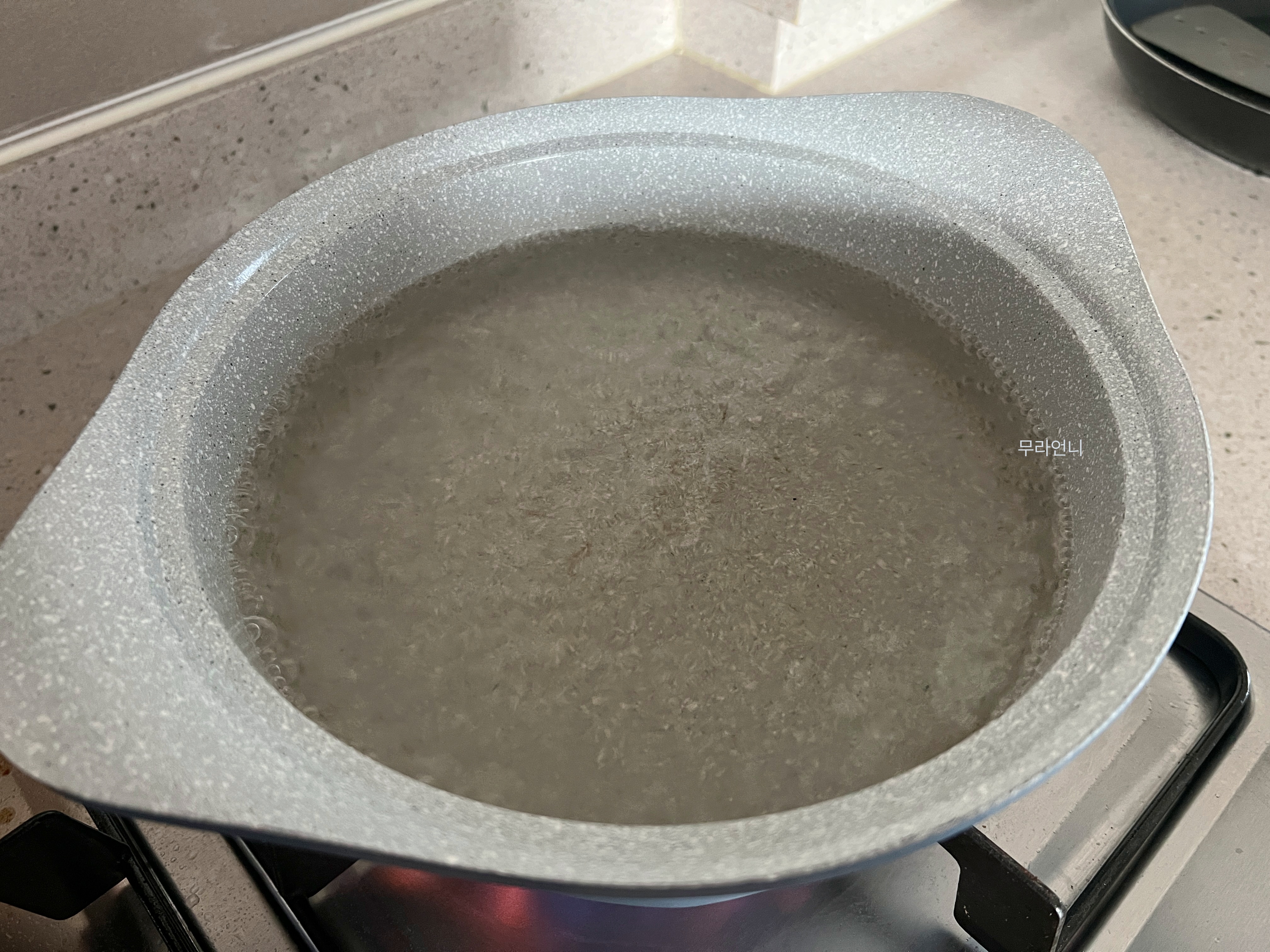 끍는 물에 굵은 소금 1스푼을 넣은 뒤