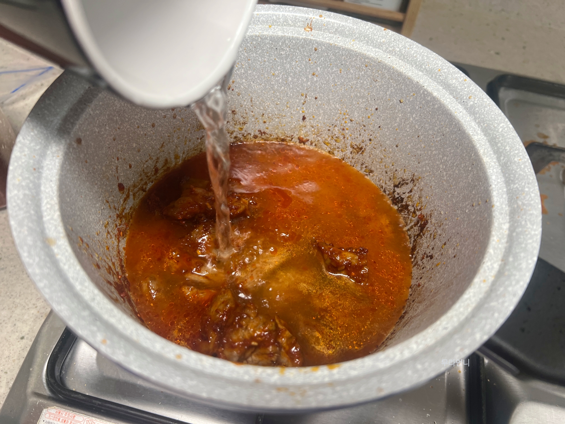 고춧가루를 볶은 뒤 물을 붓지 말고