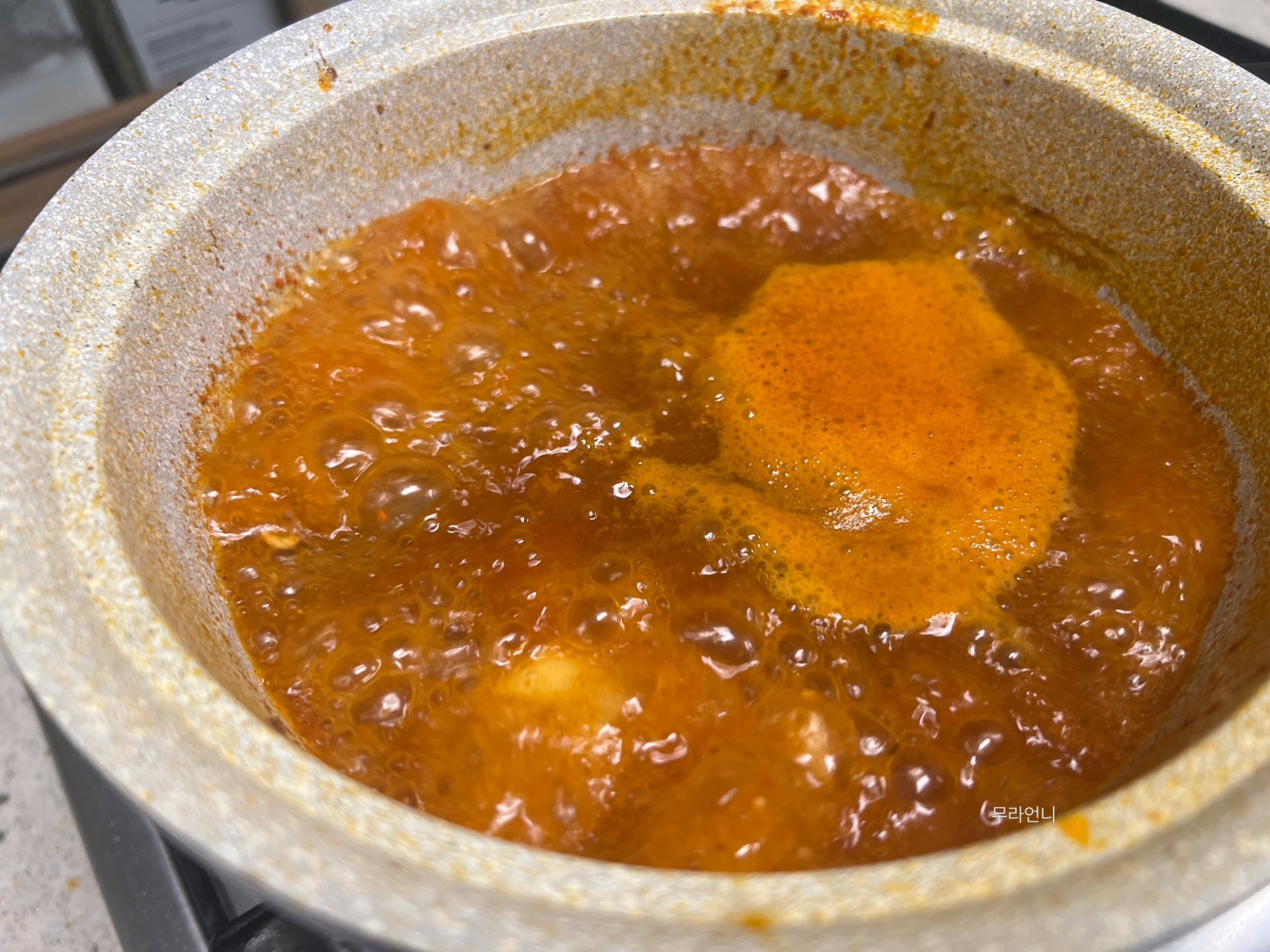 센 불에서 찌개가 끓으면